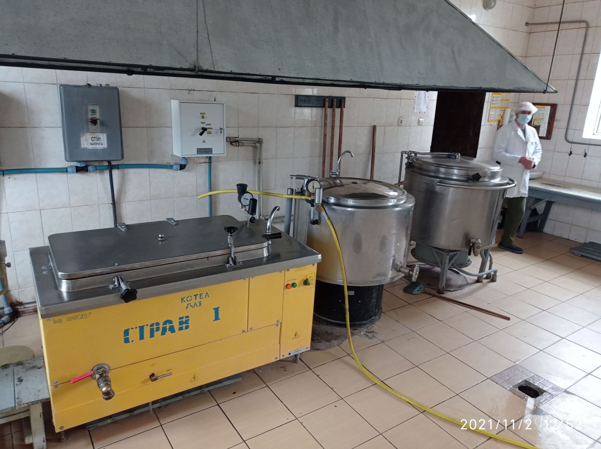 Ми побачили також, що їдять люди, які перебувають у місці позбавлення волі. У їдальні було досить чисто, стояли велетенські каструлі з їжею. На тарілках викладено м’ясо, половинка яйця, поряд — шматочками нарізане масло.