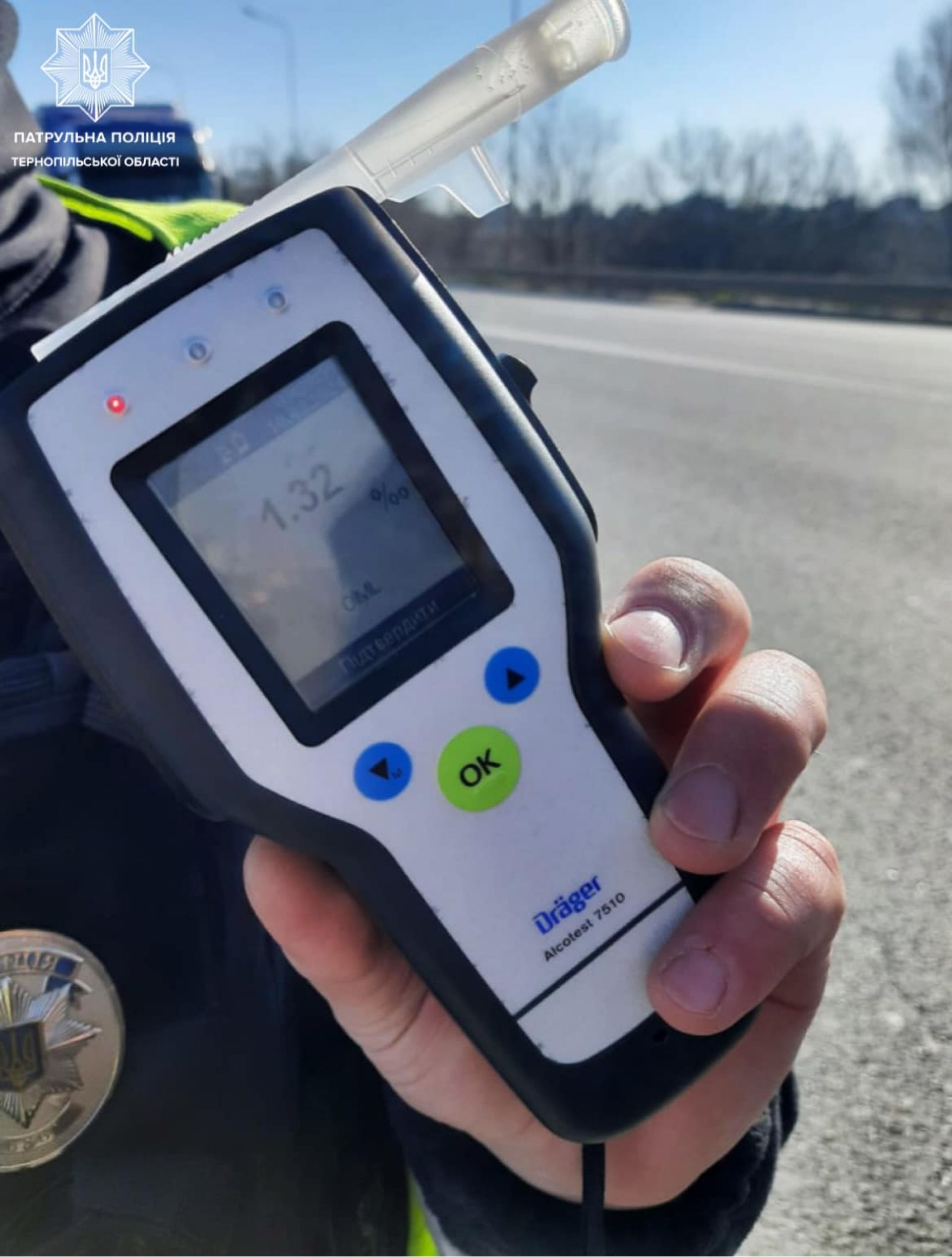 Під час спілкування з водієм патрульні помітили у останнього ознаки алкогольного сп’яніння. Результат огляду виявився позитивним — 1,32 проміле алкоголю в крові. Інспектори склали на порушника відповідні адміністративні матеріали.