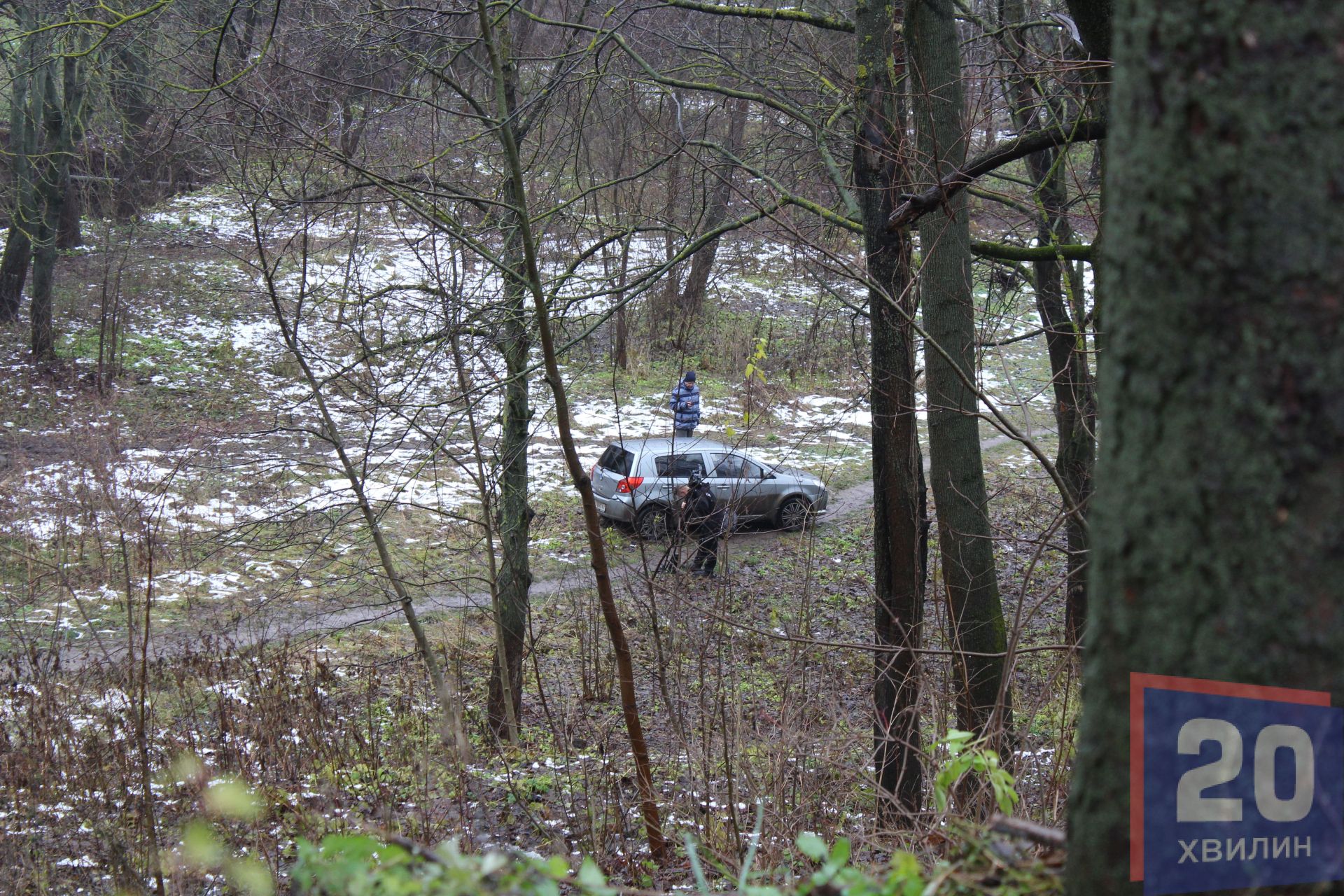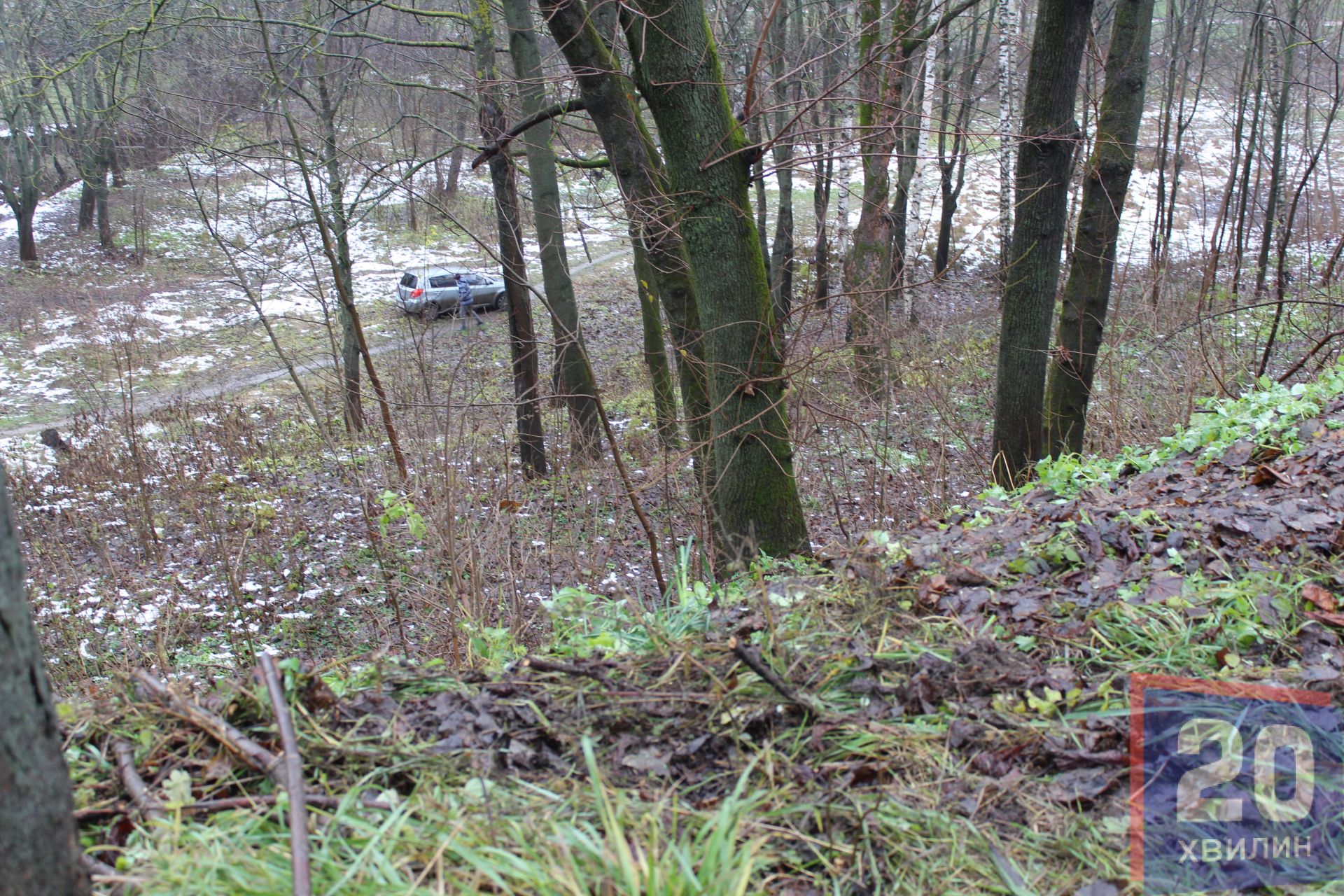 На місці аварії журналіст побачила червону Toyota, поруч патрульних та слід від коліс, який введе з дороги у парк - там стояло інше авто.