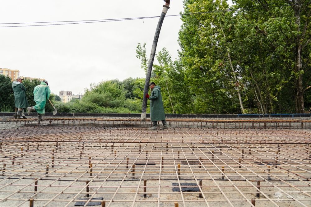 Працюють робітники із використанням новітніх сучасних технологій, які активно застосовуються у США, а в Україні їх було використано при будівництві військового аеропорта у Вінниці. Зараз працівники підрядної організації завершують роботи з бетонування монолітної розподільчої плити., повідомляє Тернопільська міська рада.