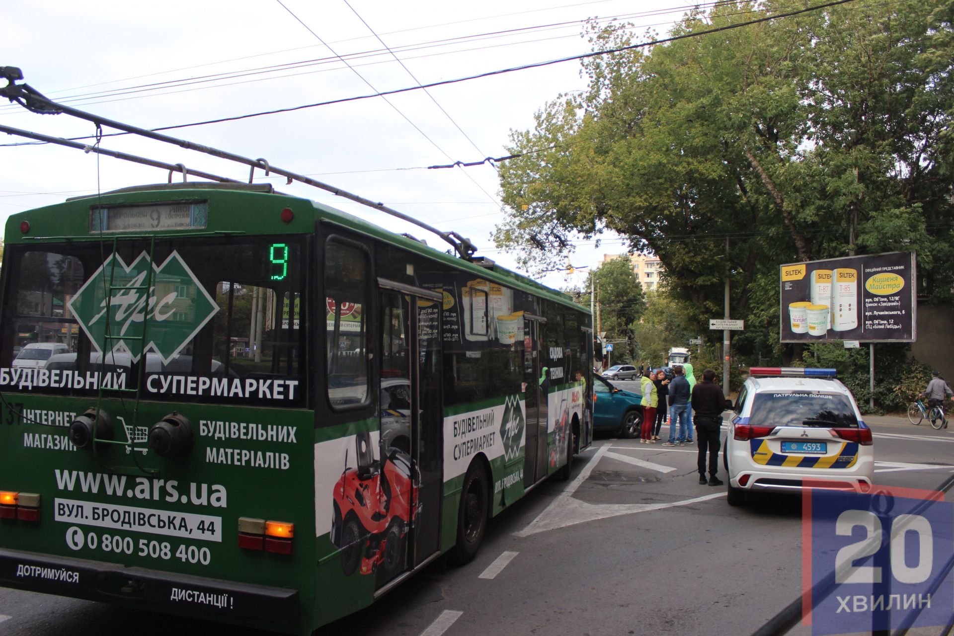 Через аварію утворився затор. Тролейбуси, що виїжджали на вулицю Збаразьку, не можуть об’їхати автівки, тому водій змушений чекати, доки триває встановлення обставин ДТП. Пасажирів у тролейбусі вже немає.