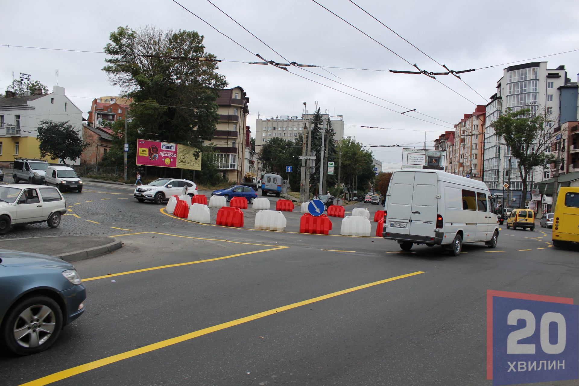 • На вулиці Соломії Крушельницької – Богдана Хмельницького нанесли нову розмітку біля тимчасового кільця. Саме ж кільце розширили.