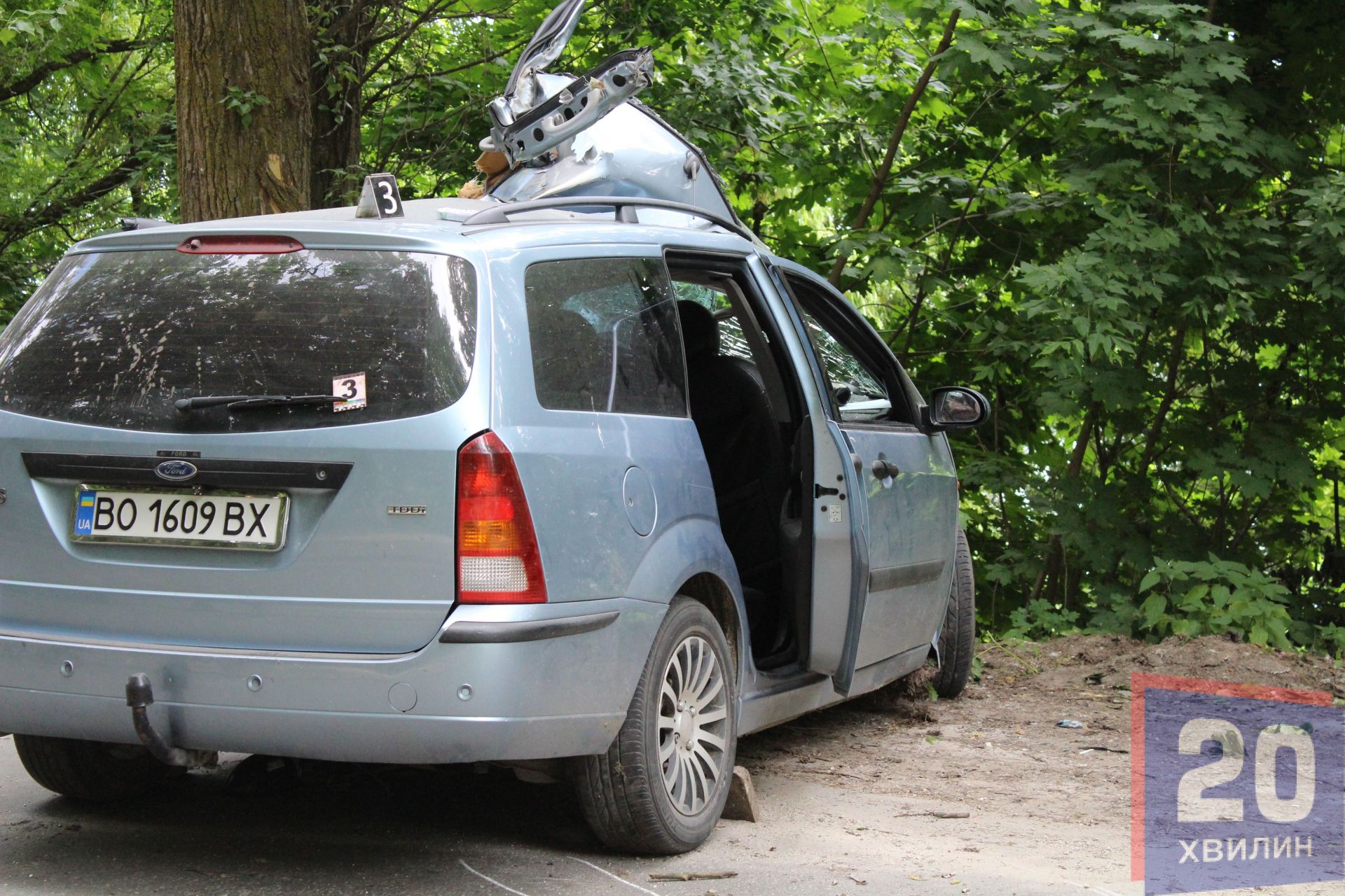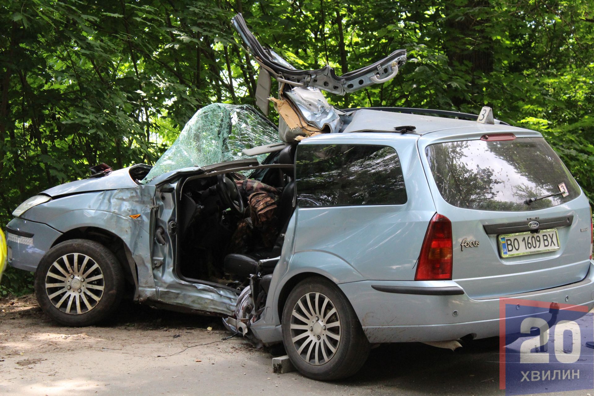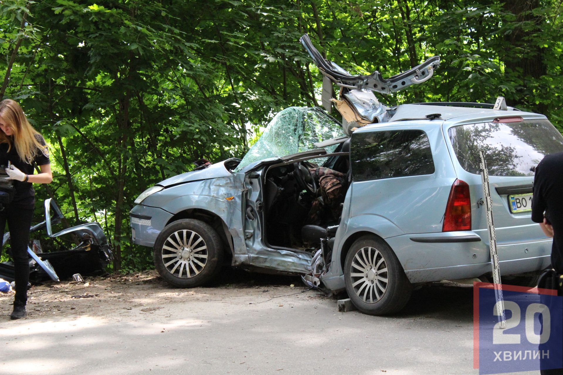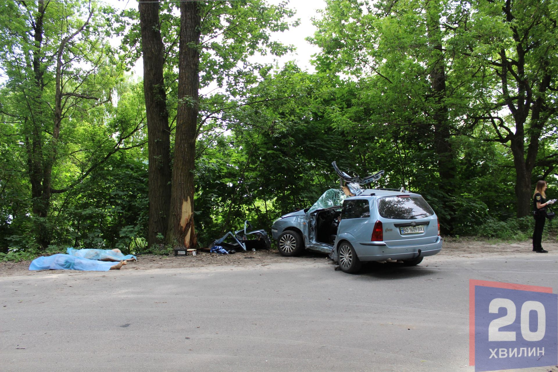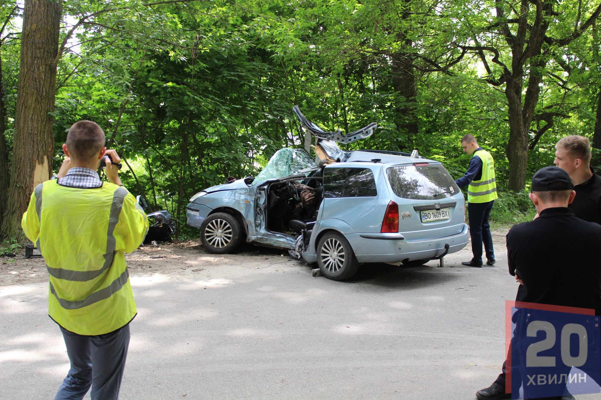 Біля дерева стояло авто, ліва сторона, якою і врізалися у дерево, повністю розтрощена. Біля авто лежало два тіла, на вигляд чоловікам років 30. Третього чоловіка забрала "швидка". Як повідомила журналістці заступник директора Тернопільського центру екстреної медичної допомоги з медичної частини Ганна Мончак, чоловіка забрали у лікарню швидкої допомоги з діагнозом політравма, стан розцінюють, як важкий.