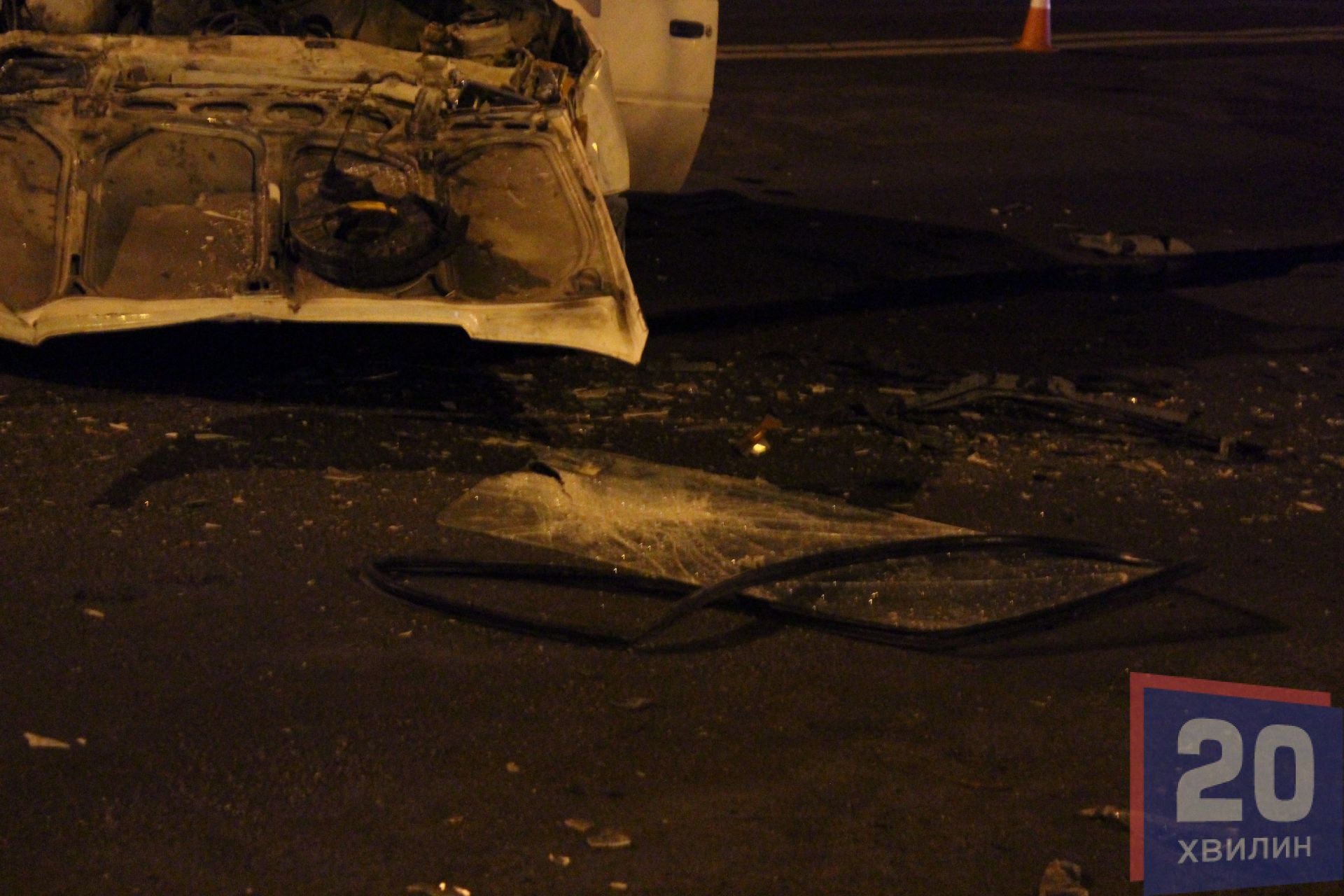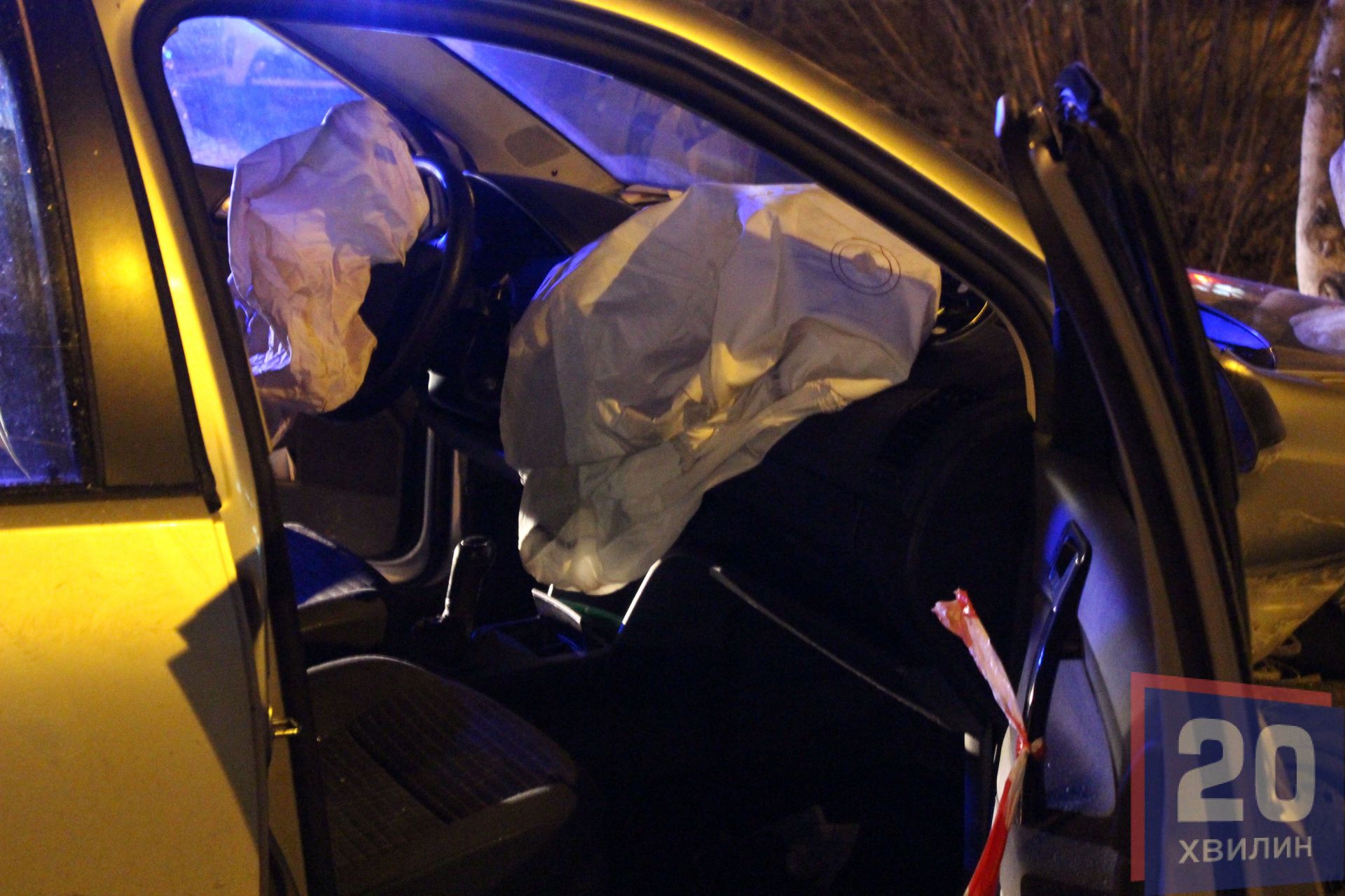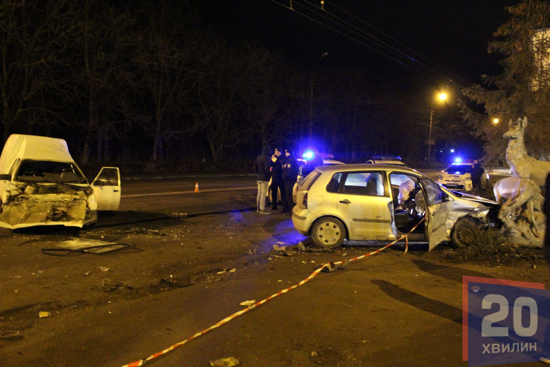 У "Таврії" повністю розтрощений перед, майже відірваний капот, вибите лобове скло. Інше авто - Volkswagen Polo врізалось у статую з двох оленів, яка розташована на узбіччі.