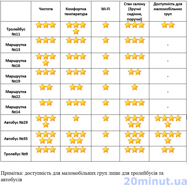 - Журналісти “20 хвилин” склали рейтинг комфорту транспорту, перевіривши його за кількома критеріями