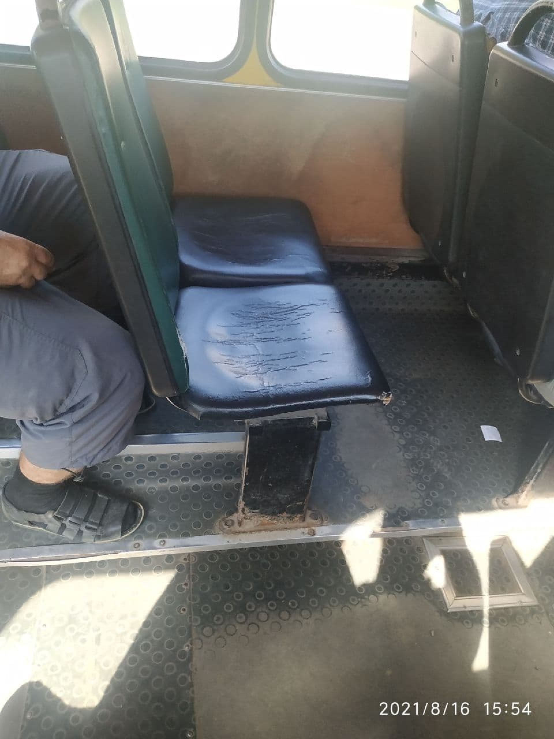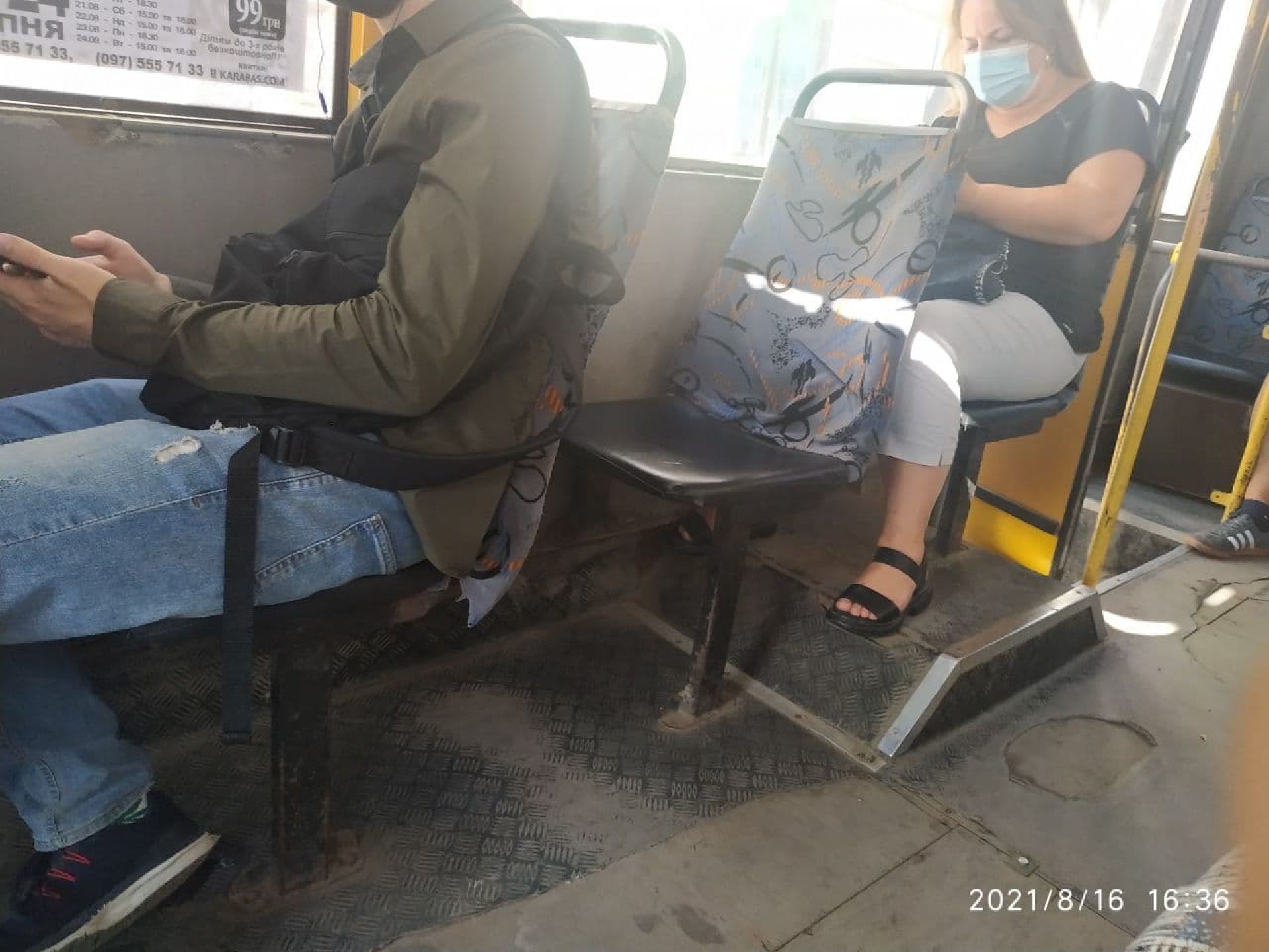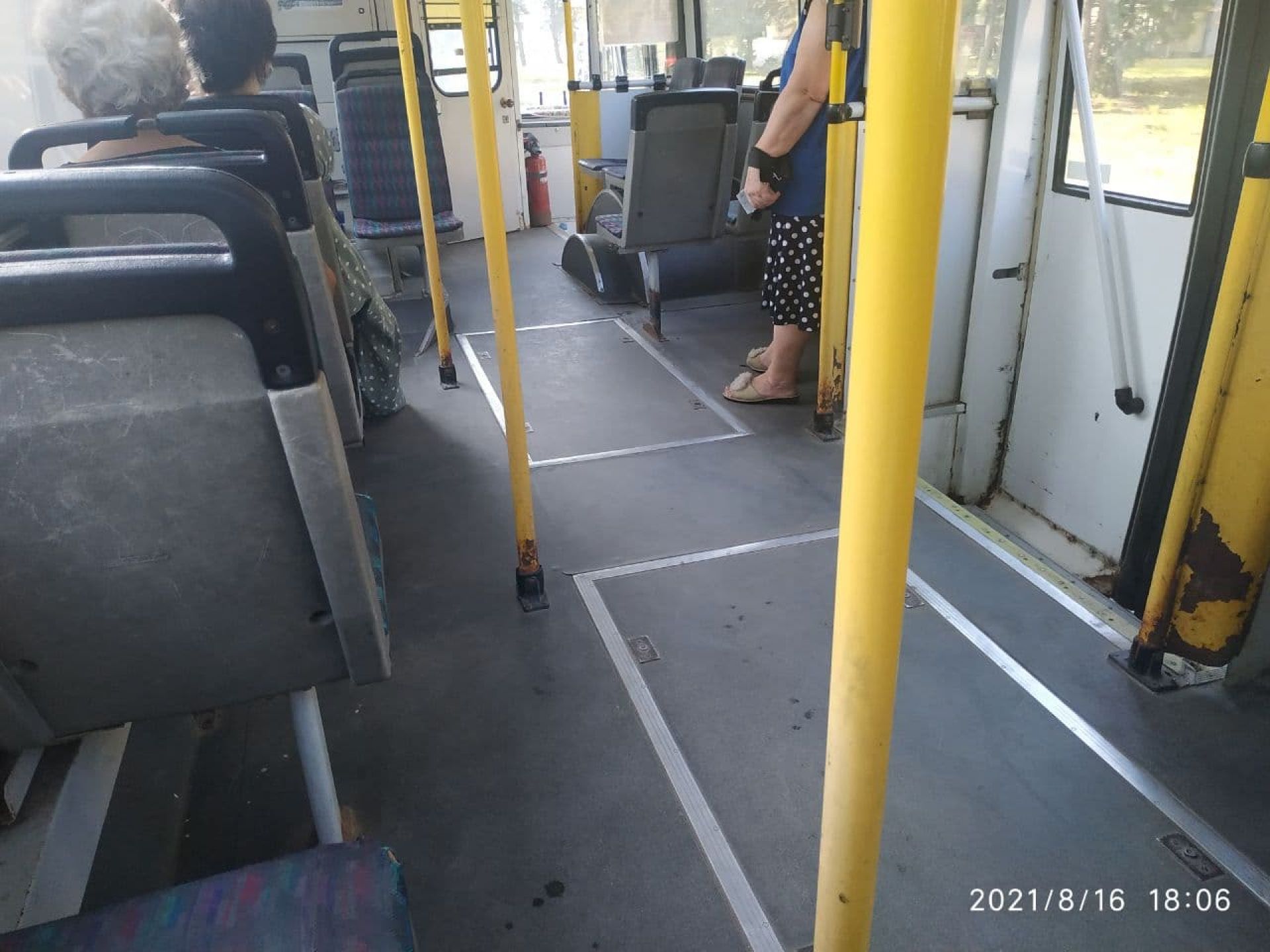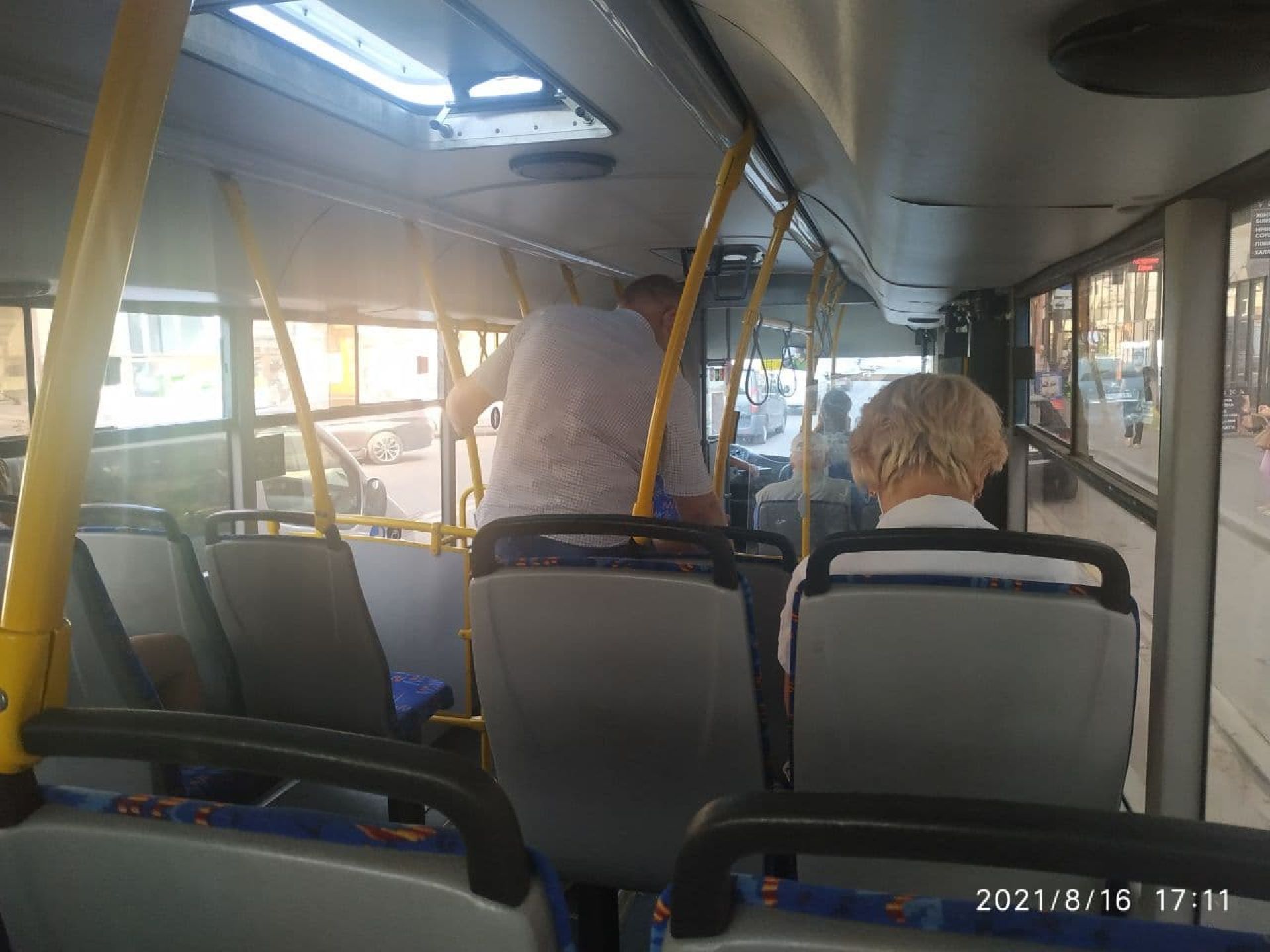 Сидіння нові і також чисті. На вологій серветці після їх перевірки не лишилося жодного брудного сліду. А от поручні не протерті. До того ж – працював кондиціонер. Через це вихід та вхід пасажирів лише на дні двері. У салоні комфортно.