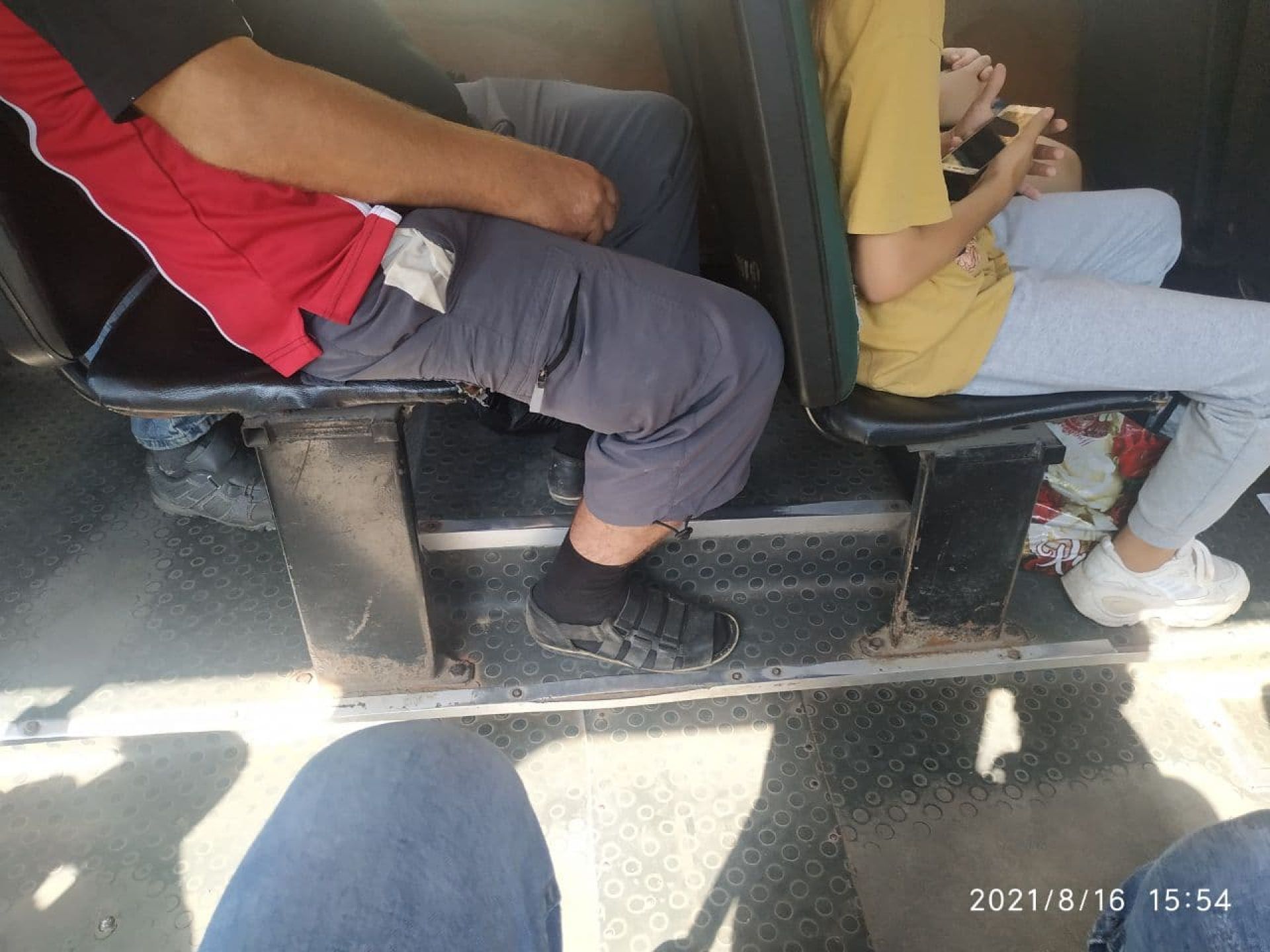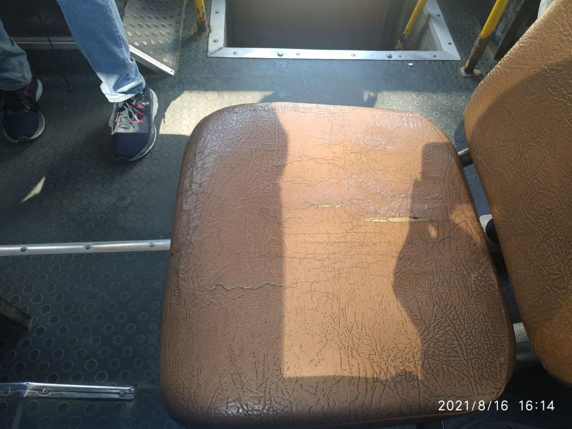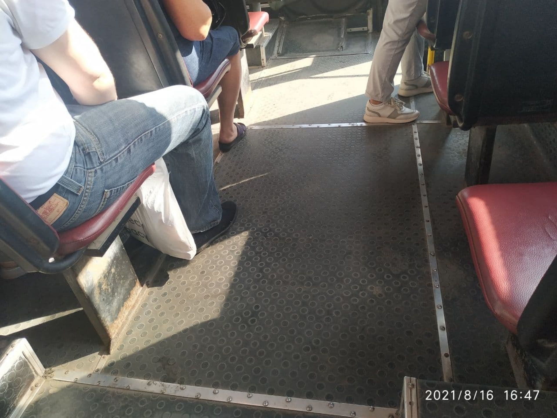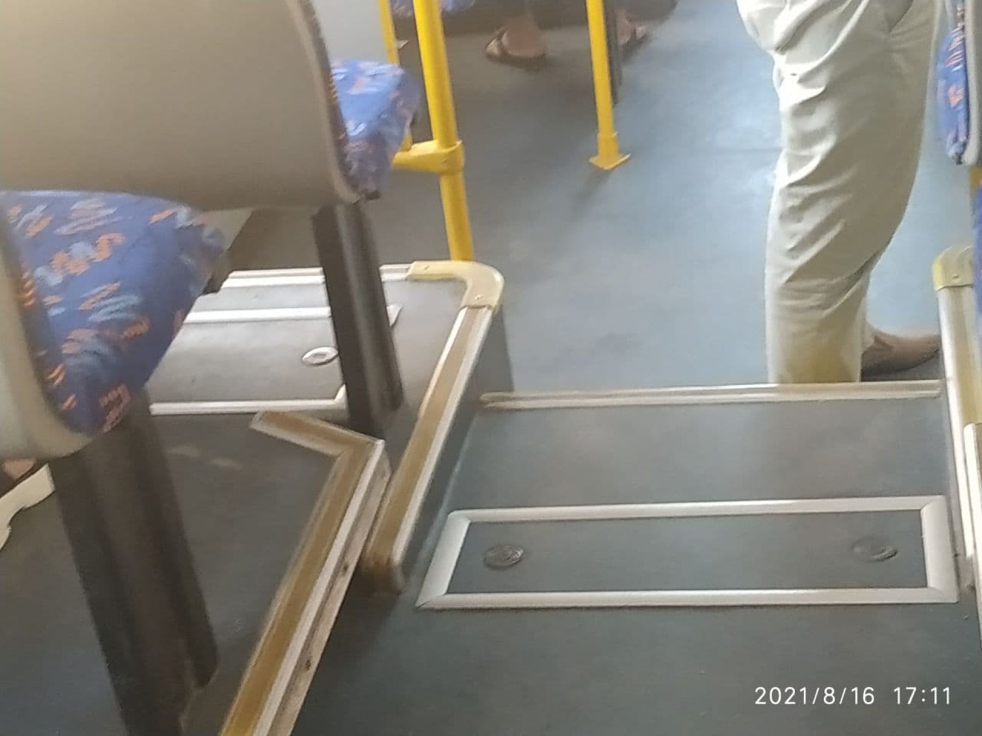 Сидіння нові і також чисті. На вологій серветці після їх перевірки не лишилося жодного брудного сліду. А от поручні не протерті. До того ж – працював кондиціонер. Через це вихід та вхід пасажирів лише на дні двері. У салоні комфортно.