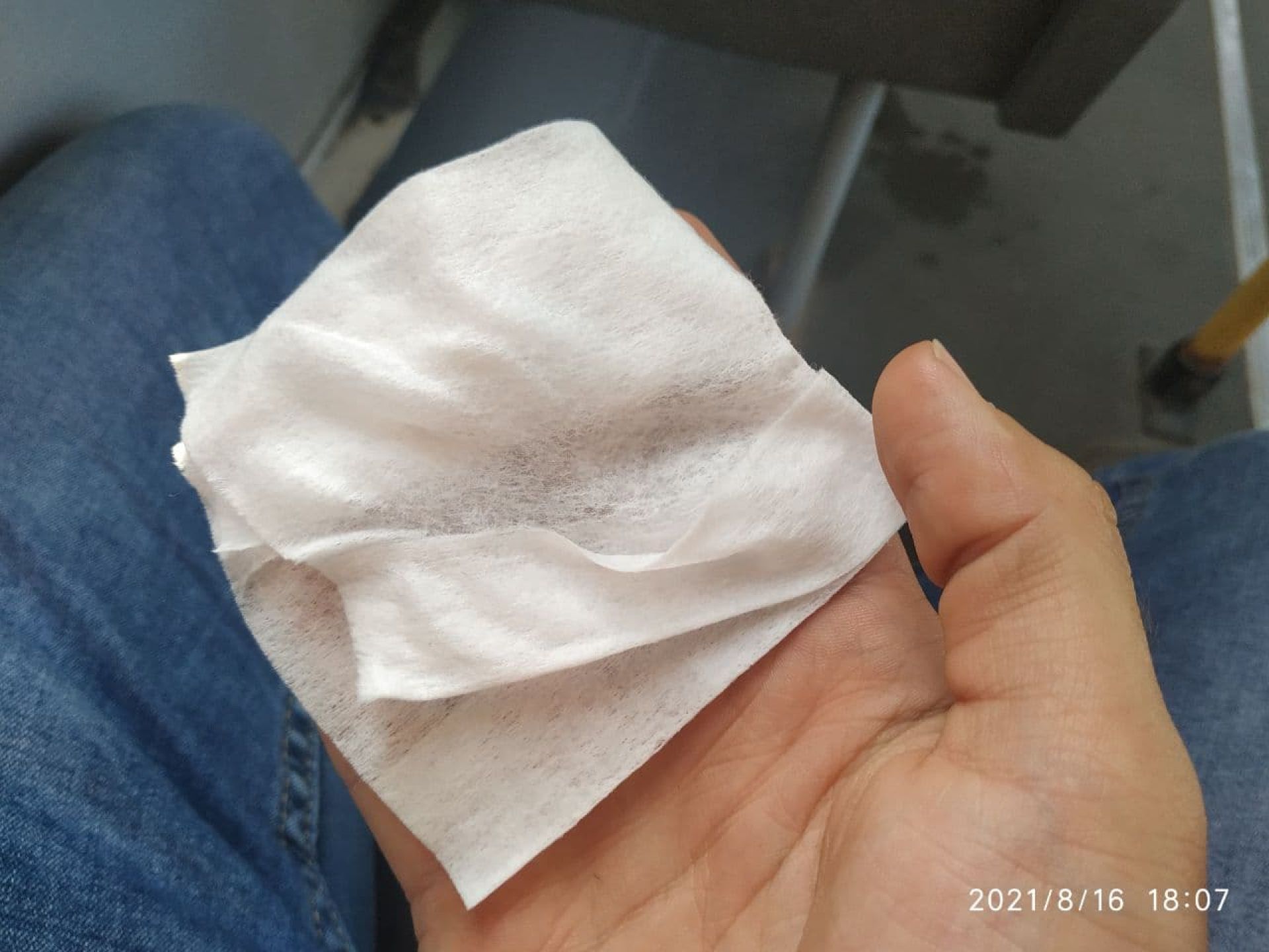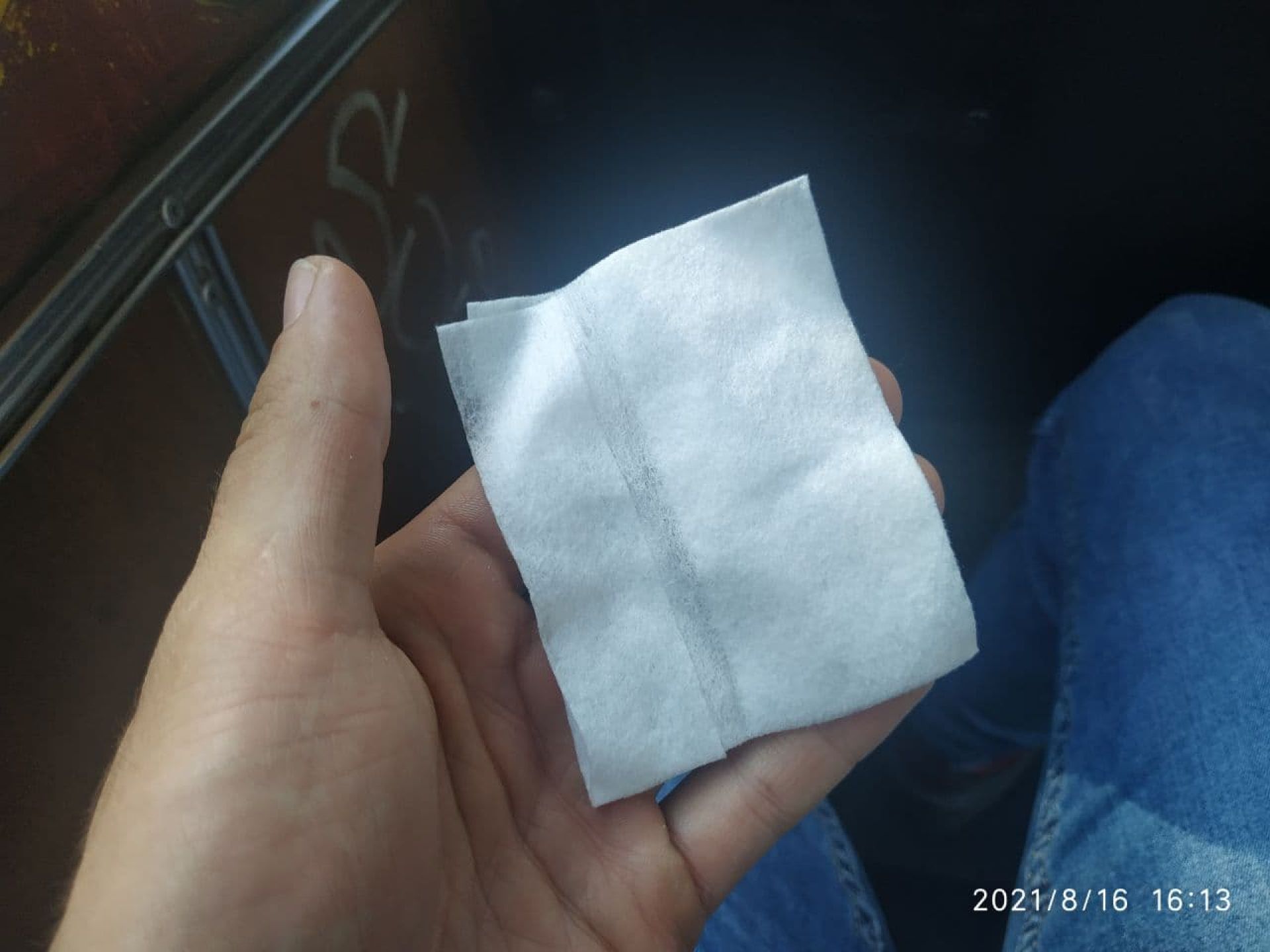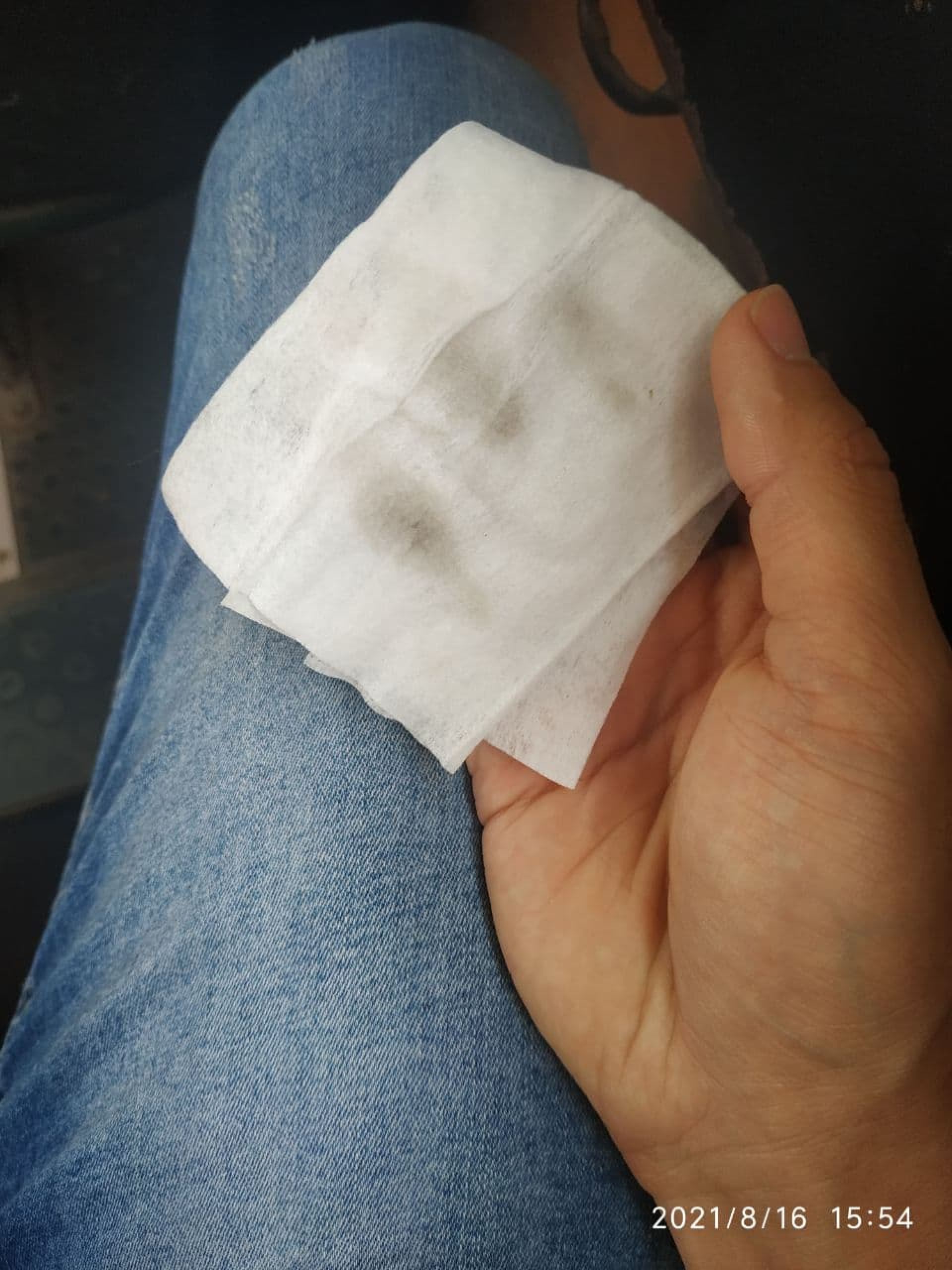 Щодо сидінь, вони вже протерті. Ми провели вологою серветкою по їх м’якій оббивці. На ній залишився темний слід. У білих речах в транспорті краще не їздити...