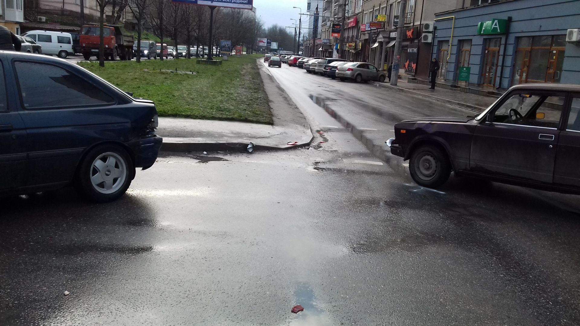 На перехресті вул. Крушельницької та Чехова “Жигулі” влетіли у старенький Ford. Від удару в останнього авто відлетіло праве заднє колесо. Водії обох машин запевняють, що їхали на зелене світло. Правоохоронці, що прибули на місце зіткнення обходять прилеглі магазини, в надії отримати відео з камер спостереження.