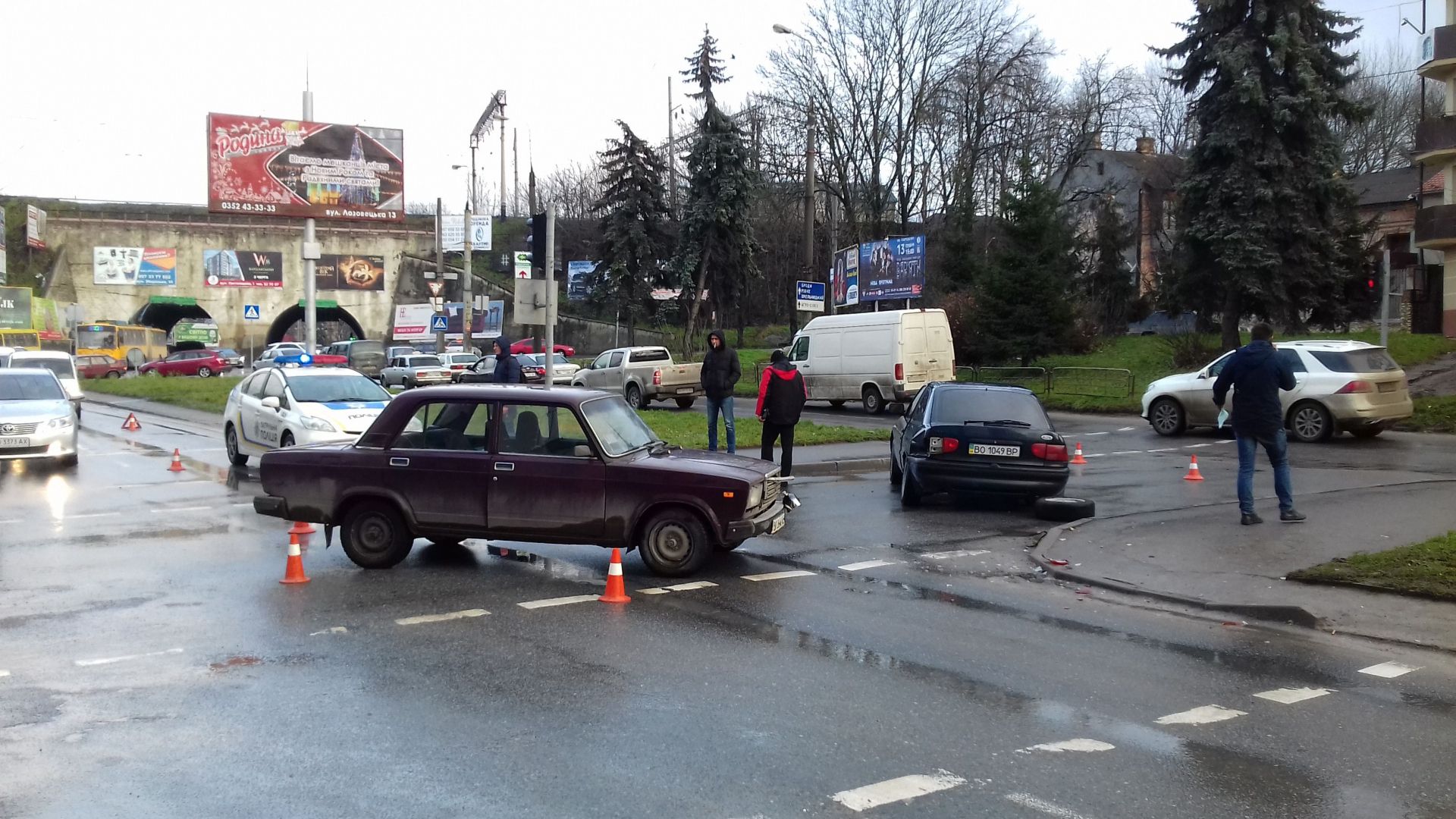 Через аварію утворилися затори на вул. Крушельницької, в якій застрягли автомобілі, що їдуть з "Сонячного" у Центр.