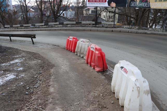 Наразі дорожні обмежувачі руху відділяють частину тротуару від дороги.