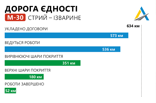 Цьогоріч планують зшити схід та захід України найдовшою дорогою та відновити понад 600 км автошляху у Львівській, Івано-Франківській, Тернопільській, Хмельницькій, Черкаській, Кіровоградській, Дніпропетровській, Донецькій областях.