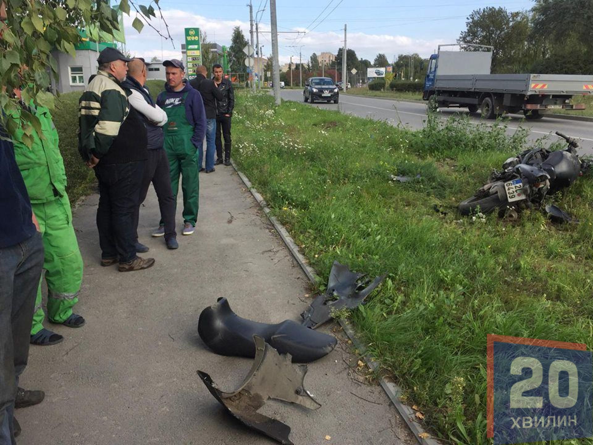 - Мотоцикліст їхав в сторону вулиці Збаразької, з"їхав на узбіччя і вдарився в бардюр, - каже перехожий. - З ним їхав ще пасажир, обоє молоді і без шоломів. Їх забрала швидка, в них ноги поломані і ще багато травм.