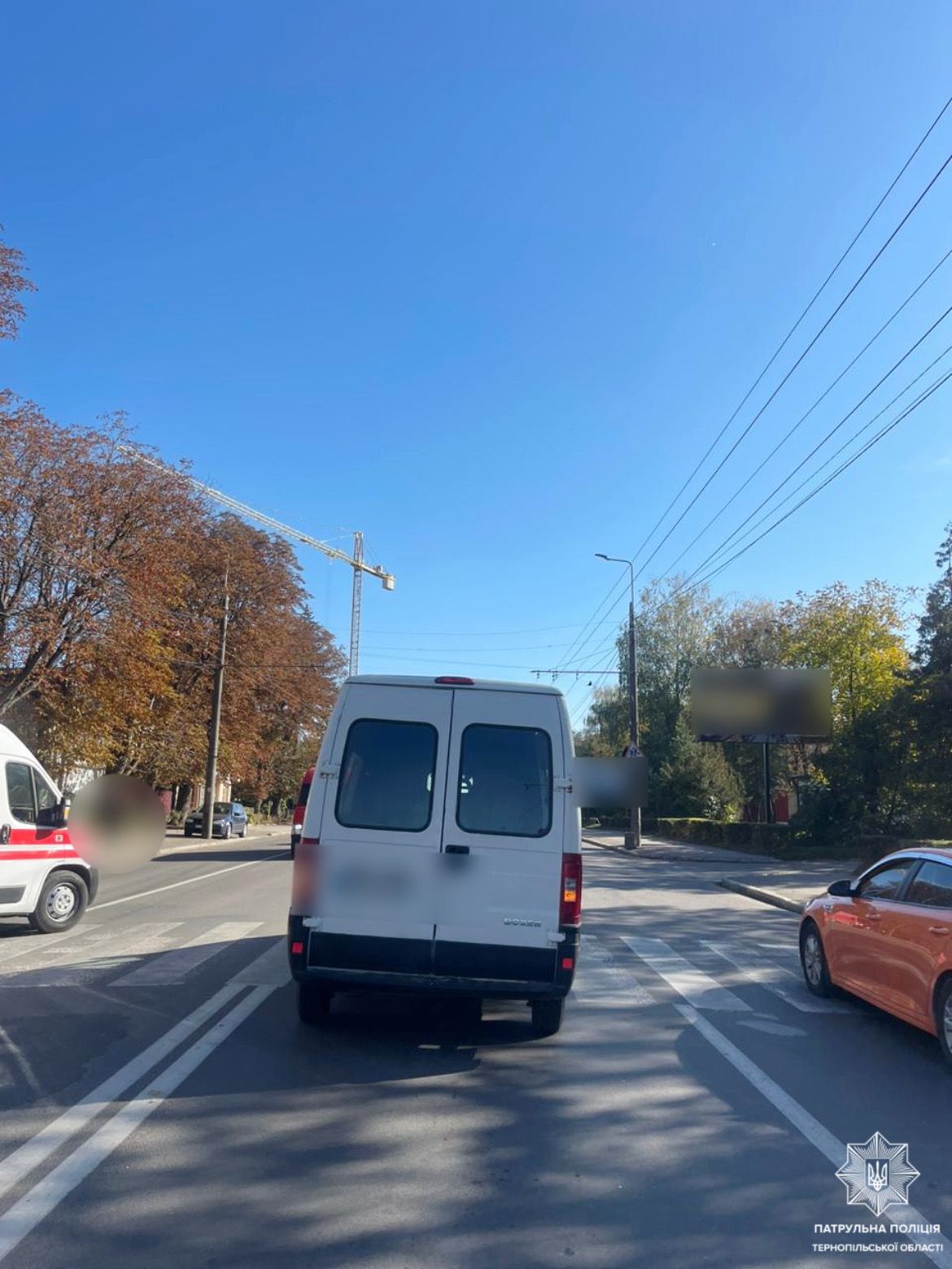 — Це як їхали проспектом Бандери в напрямку Збараького кільця, — пояснила читачка Катерина. — Там є світлофор, потім зупинка громадського транспорту, а трохи нижче пішохідний перехід. Водій їхав у правій смузі, рушив зі світлофора, буквально «вперся» в тролейбус і, напевне, вирішив об’їхати його, тому звернув у ліву смугу.
