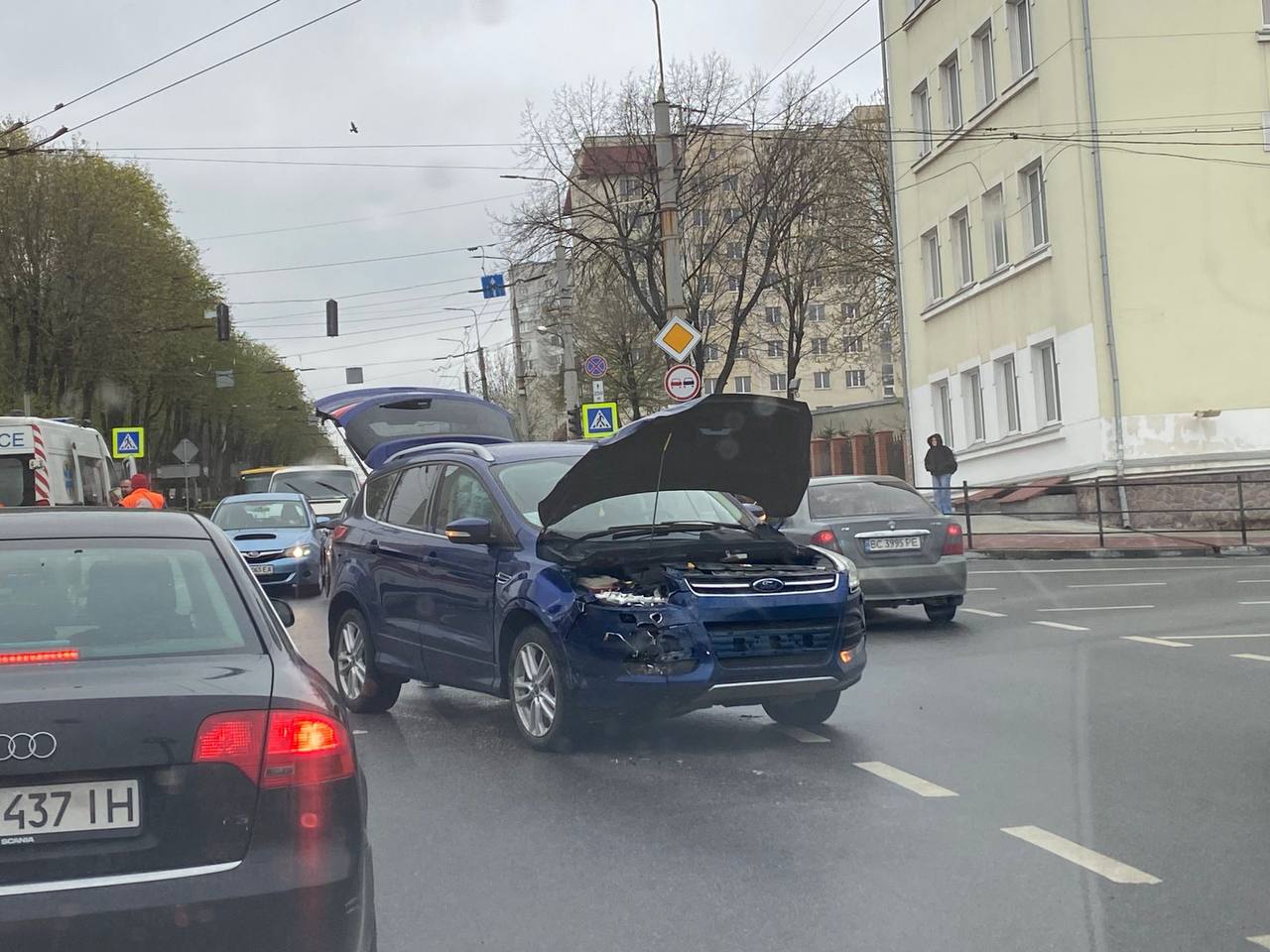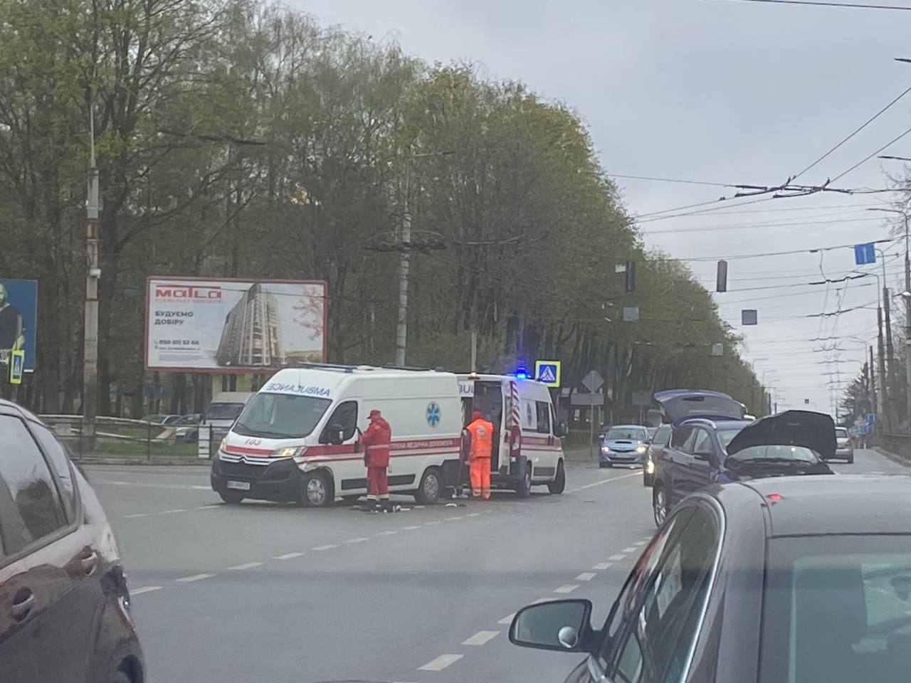 — Збоку стоїть битий Ford, поруч два авто швидкої, — розповів журналістам читач. — Швидкі стоять одна до одної задом — можливо, переміщують людину, яку мали госпіталізувати. Деталей я не знаю.