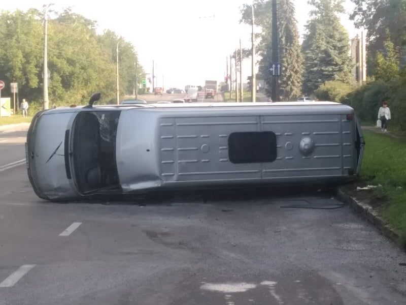 На Микулинецькій аварія: мікроавтобус перекинуло на бік (ФОТО. ВІДЕО)