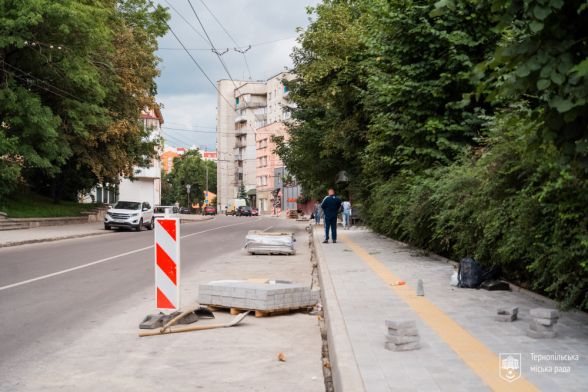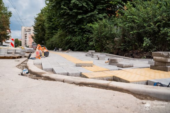 У Тернополі продовжують облаштовувати новий тротуар на вулиці Острозького. Роботи проводять на відрізку від перехрестя вулиць Острозького, Микулинецької та Торговиця до дитячо-юнацької спортивної школи №2.