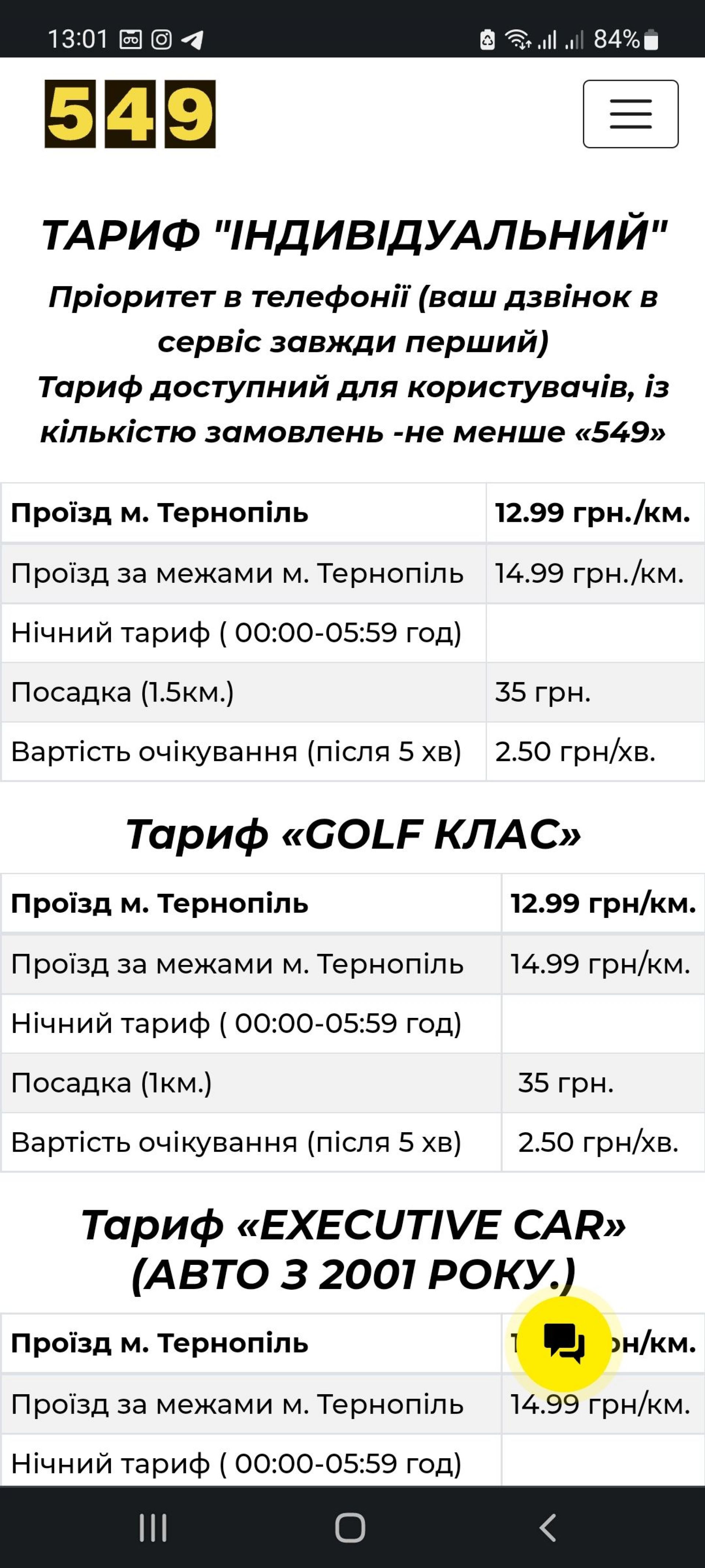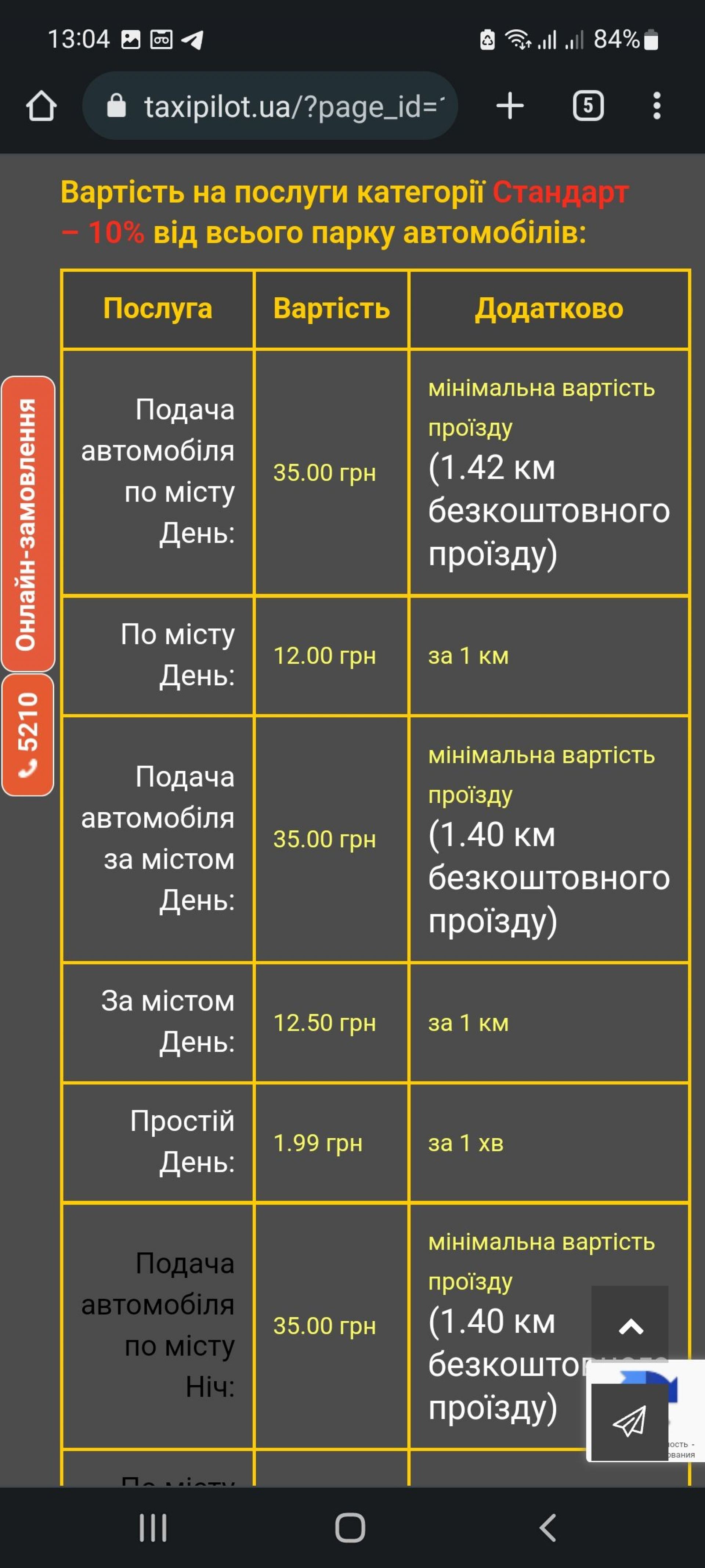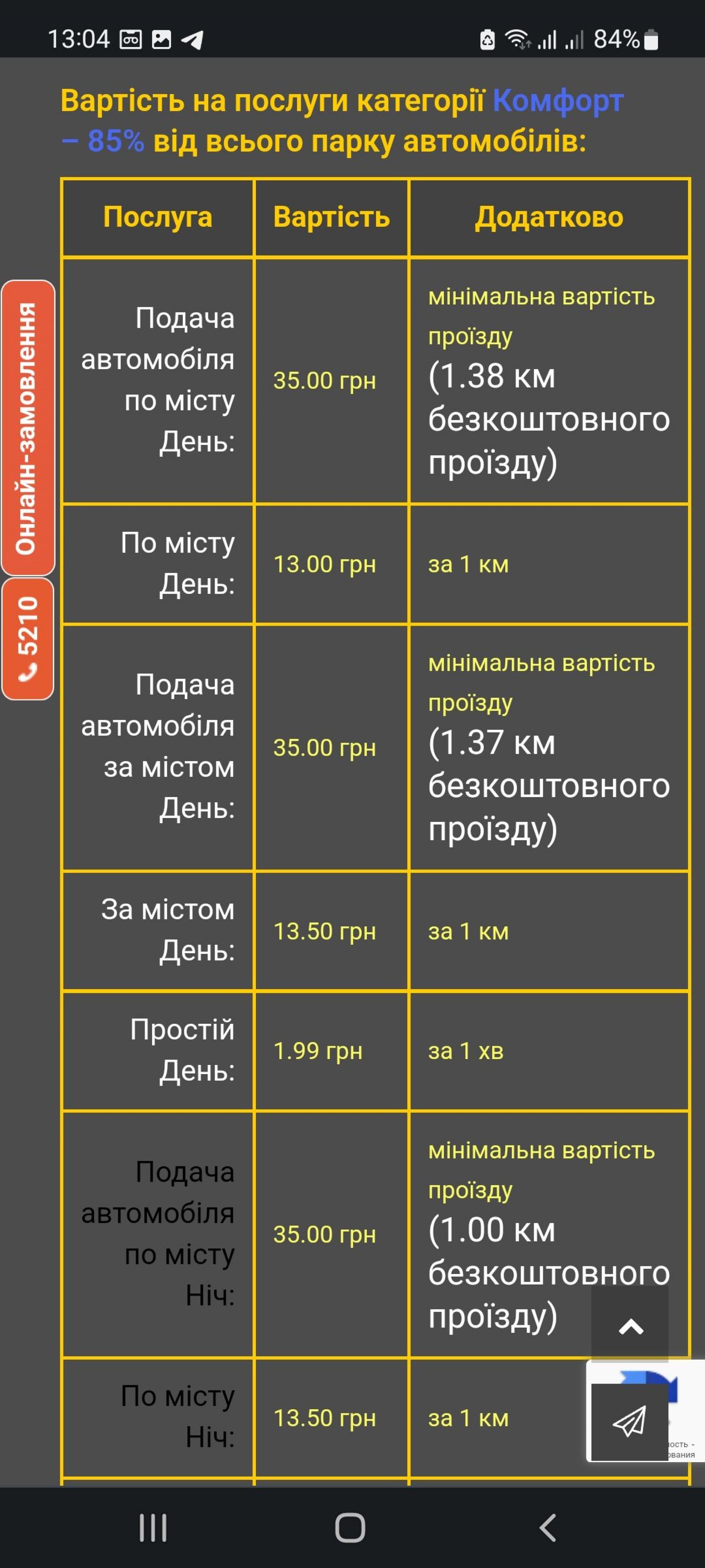 Диспетчери цієї служби сказали, що вони не можуть назвати вартість поїздки, оскільки вартість поїздки розраховується за лічильником. За тим, щоб дізнатися тарифи відправили на сайт служби, але в пошуках тарифів – можна «ногу зламати». Зателефонували ще раз і тоді диспетчери порадили ввести в пошуку разом з назвою слово тарифи і тільки після цього ми їх знайшли. Відтак, згідно з даними на офіційному сайті служби за півтора кілометри поїздки треба заплатити 35 гривень. Кожен наступний кілометр коштує 12.99 гривень.