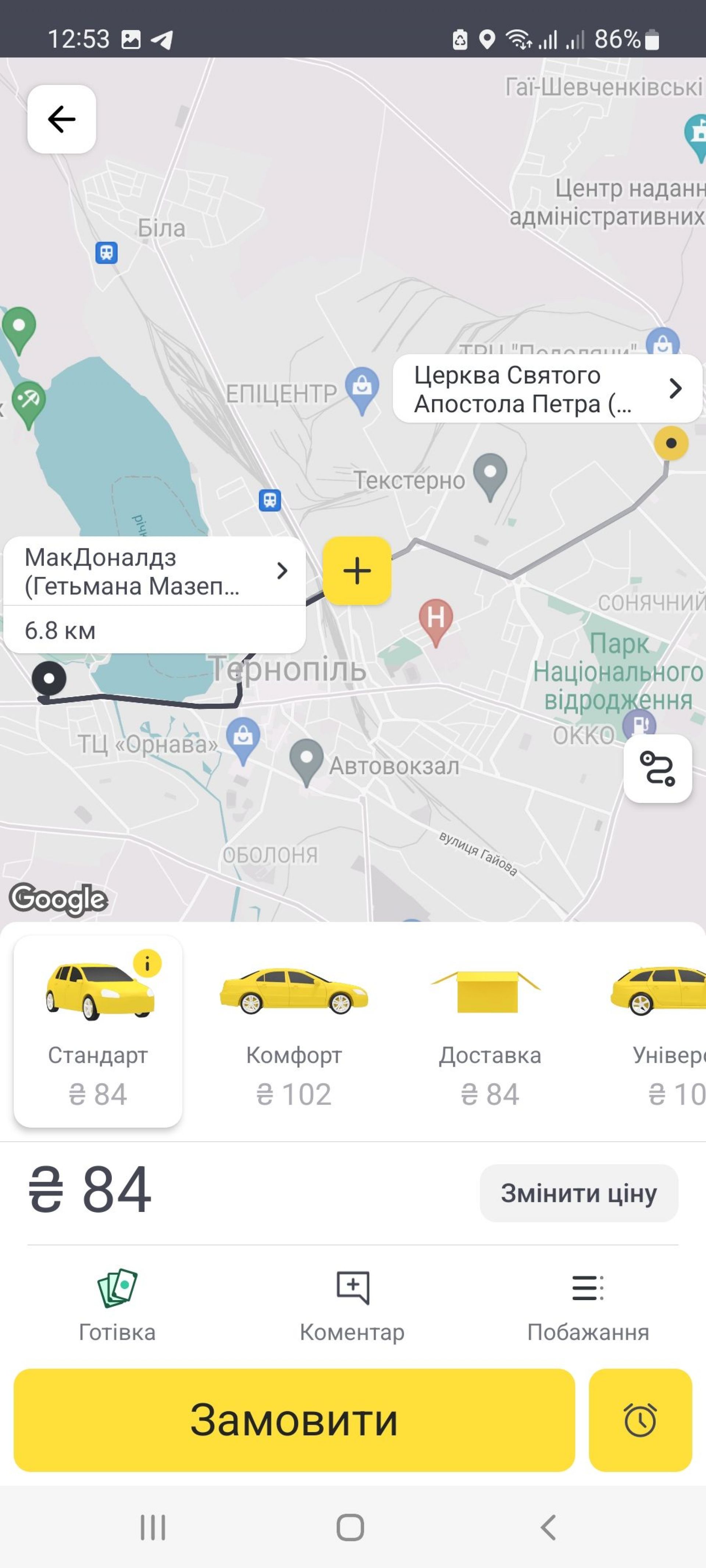 Маршрут від церкви святого апостола Петра до McDonalds – 84 гривні.