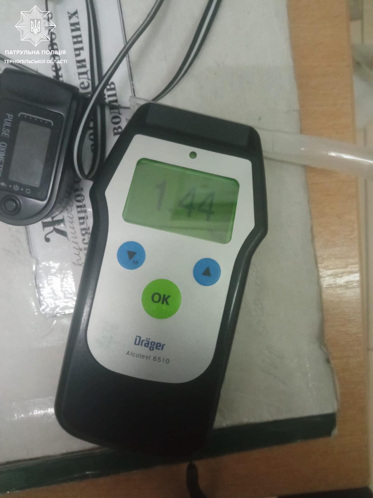 Інспектори виявили за кермом чоловіка з явними ознаками алкогольного сп'яніння та запропонували пройти огляд. Чоловік погодився пройти освідування у медичному закладі. Результат позитивний — 1,44 проміле алкоголю в крові водія.