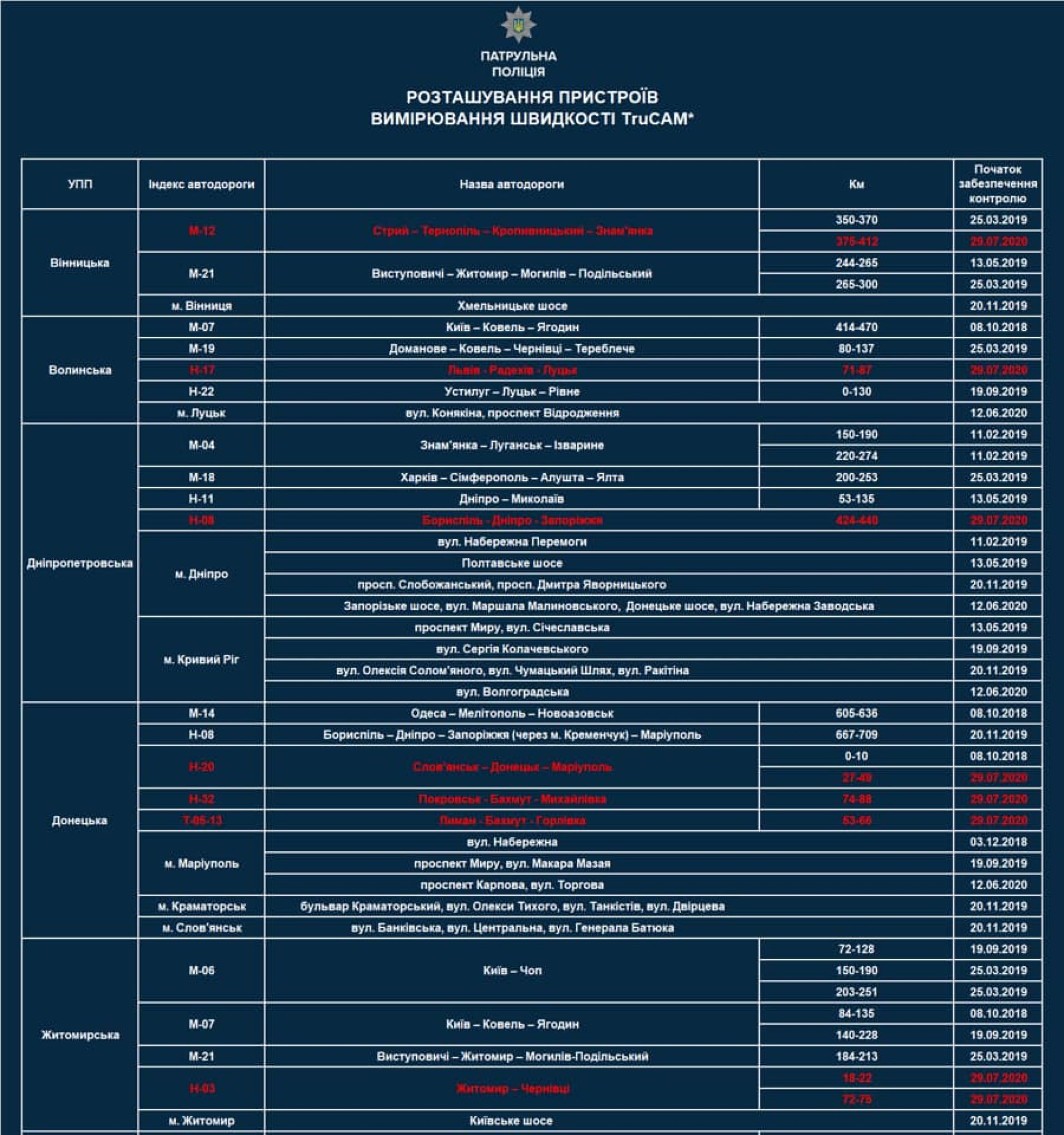 Від 29 липня в Україні з'явилися ще 43 нових та розширено вже 5 існуючих ділянок, де патрульні вимірюватимуть швидкість приладом TruCAM. Переглянути карту й перелік місць з оновленою інформацією можна тут — https://cutt.ly/dsKmJKA