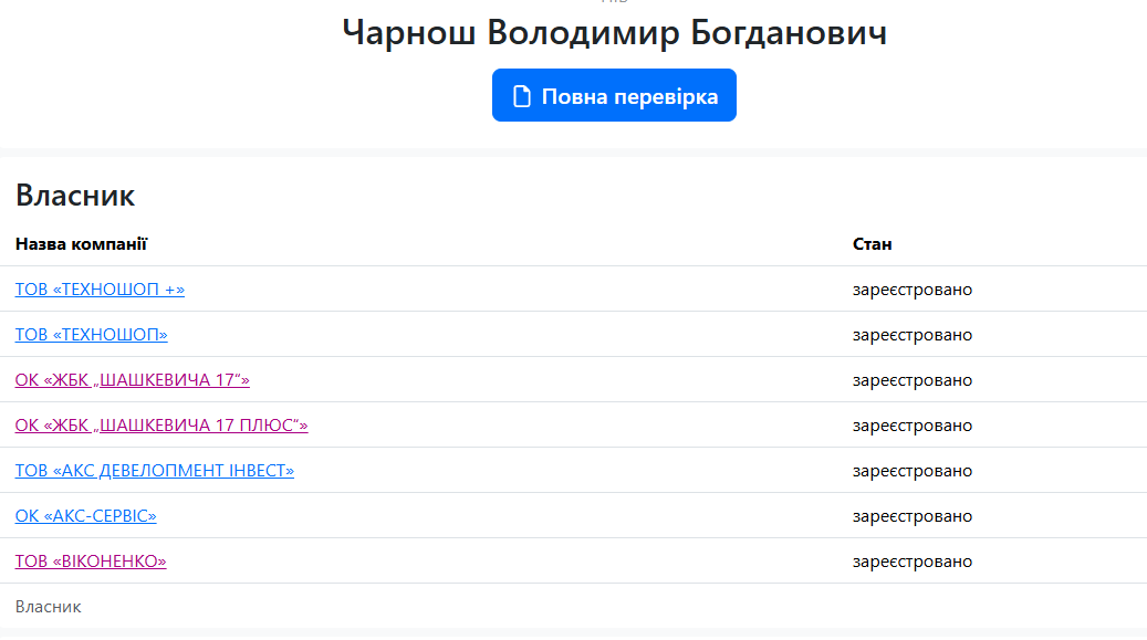 Через відкриті дані ресурсів Opendatabot та Youcontrol видно, що Володимир Чарнош та Юрій Яремчук є бізнес-партнерами і співвласниками деяких товариств.