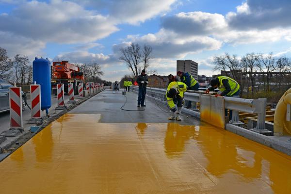 — Лівий проїзд вкрили водонепроникною мембраною. Гідроізоляція захистить проїзну частину шляхопроводу через залізничну колію від проникнення та шкідливого впливу води, хімічно агресивних рідин, стічних вод тощо, — йдеться у повідомленні. — Також вона забезпечить надійну експлуатацію та підвищить довговічність мосту. Спеціальне покриття мостобудівники нанесли в 3 шари.