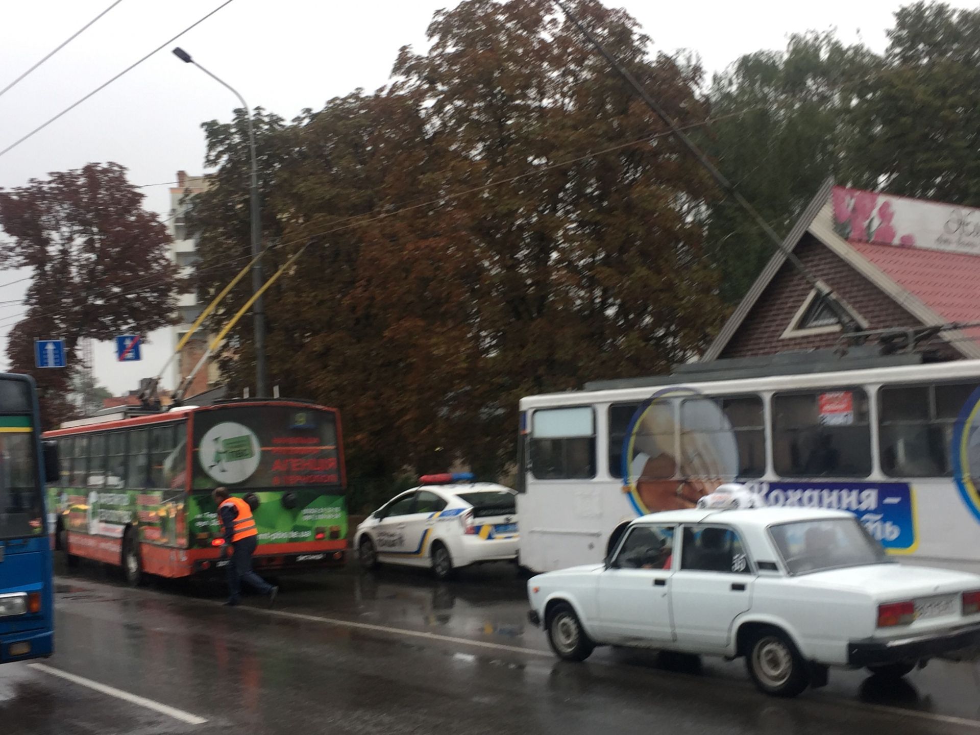 - Фура зачепила тролейбус. Водій втік, його шукають патрульні, - каже водій тролейбуса.