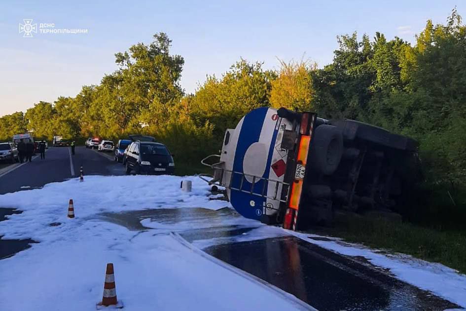 — На узбіччя перекинувся тягач, що перевозив близько 20 тонн дизпального, на місце події направили команду найближчого пожежно –рятувального підрозділу із Теребовлі, — каже Андрій Брик. — Як з’ясували на місці, розгерметизації не сталося, але був помічений незначний витік пального через технологічні отвори.