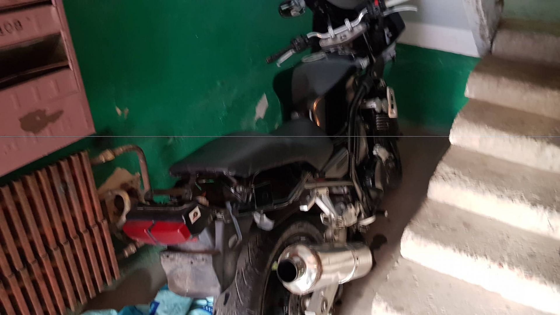 Мотоцикл знайшли. В під'їзді багатоповерхівки на вулиці Курбаса, 9. Без номерів, накритий простирадлом.