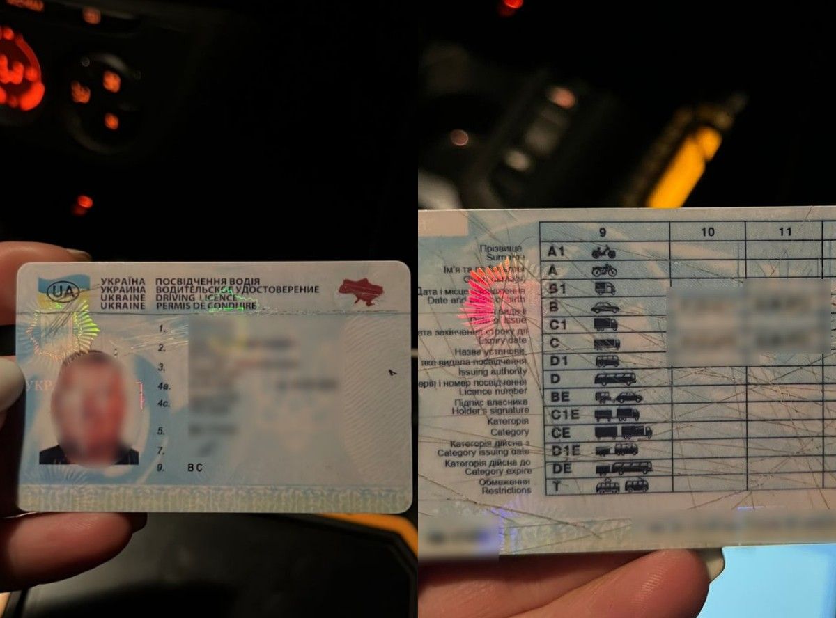 Інспектори помітили автомобіль Opel, який рухався вулицею з вимкненими фарами. Поліцейські зупинили автівку та, перевіряючи відповідні документи, виявили ознаки підробки посвідчення водія.