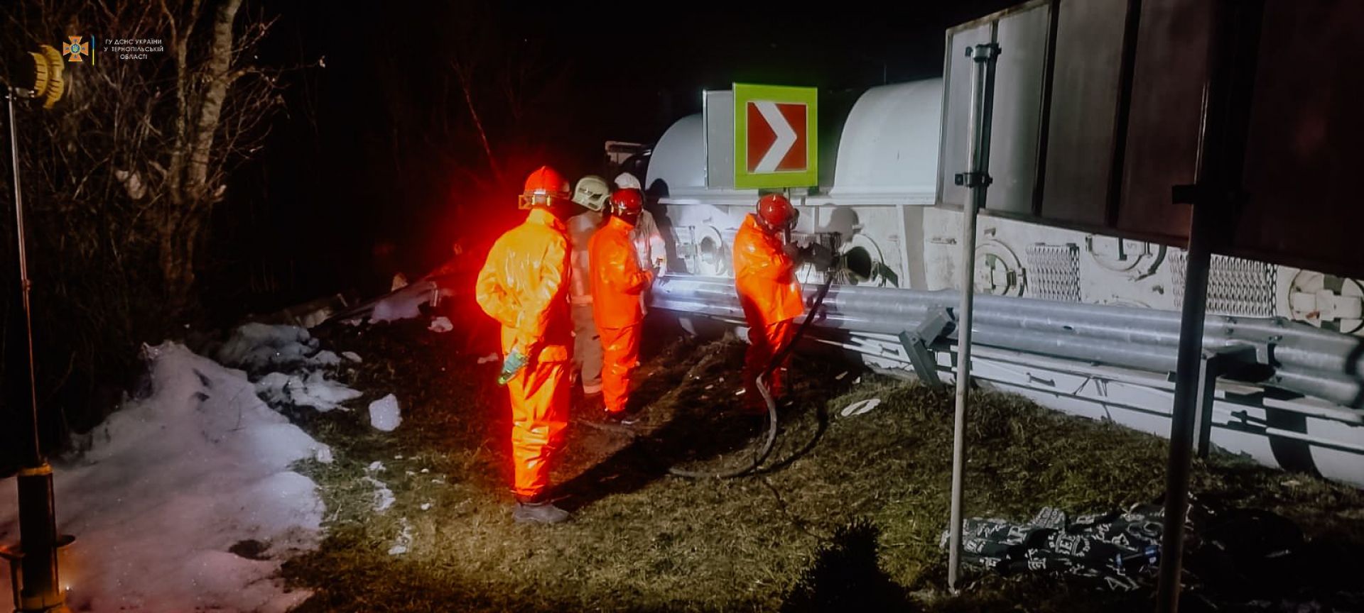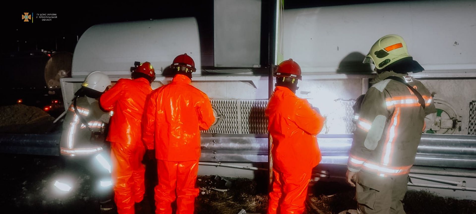 Нагадаємо, 5 січня о 20 год 22 хв до оперативно-диспетчерської служби оперативно-координаційного центру Головного управління надійшло повідомлення про те, що на автодорозі М-19 «Доманове - Ковель - Чернівці – Тереблече», в селищі Нагірянка Нагірянської територіальної громади Чортківського району, відбулося перекидання сідельної автоцистерни з бензином.