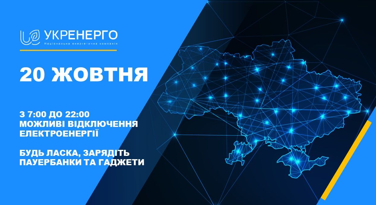 Нагадаємо, вчора НЕК Укренерго повідомила, що 20 жовтня, з 7:00 до 22:00 в Україні можуть бути застосовані заходи обмеження споживання. Коли відключать саме вашу вулицю – визначає ваш оператор розподільчих мереж (обленерго).