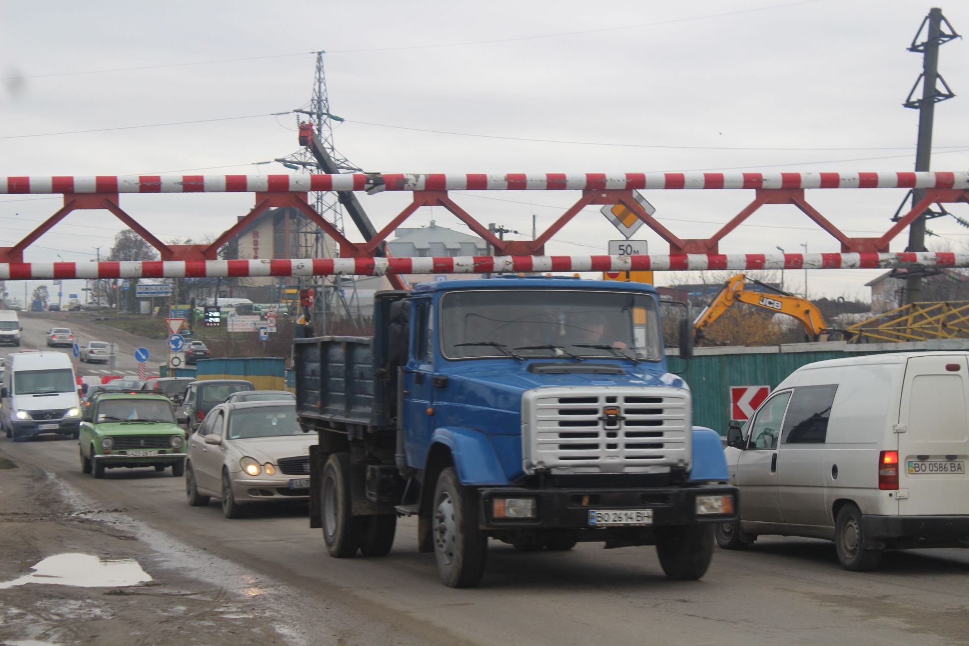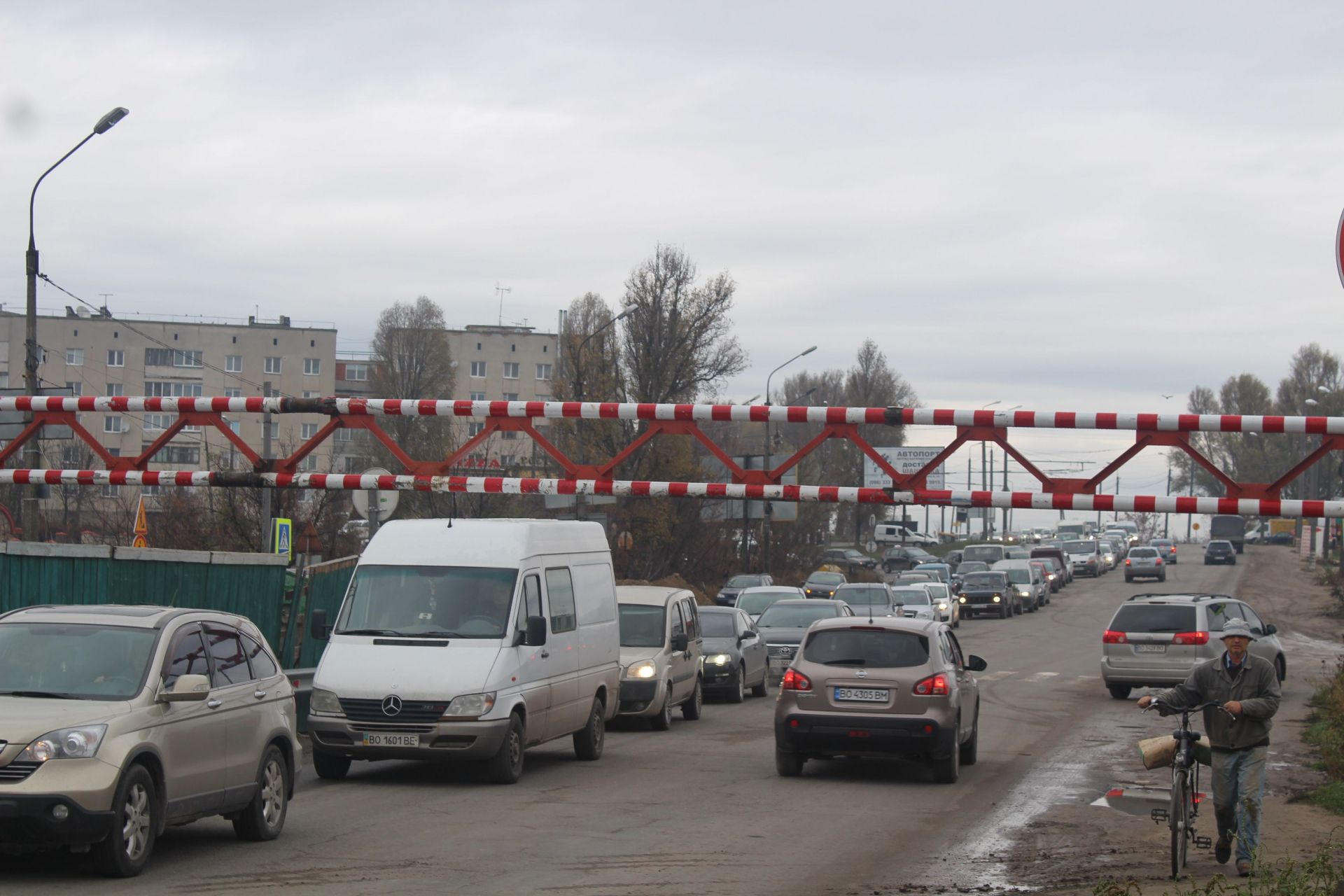 Сам обмежувач вже повернули на місце після чергової ДТП. Він дещо погнутий в кількох місцях. Водії мікроавтобусів вільно проїжджають тут.Також водії автомобілів КрАЗ можуть проїхати під обмежувачем. Біля аварійного мосту часто сутворюються затори.