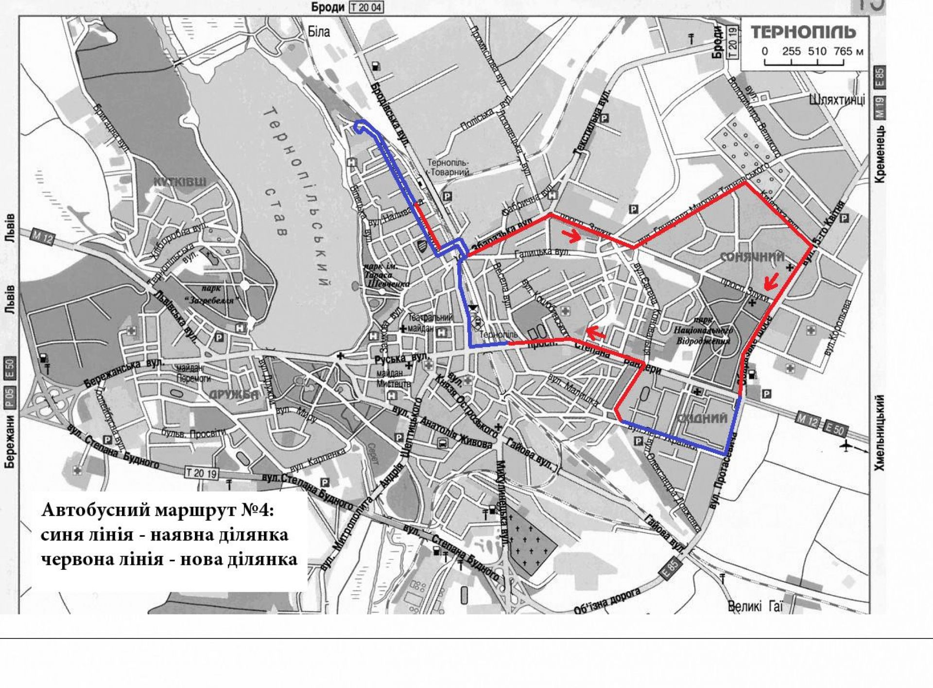 Зважаючи на численні прохання мешканців мікрорайону «Новий світ», відтепер автобусний маршрут №4 «Вул. Новий світ – вул. Київська – вул. Лесі Українки» курсуватиме від «шостого магазину» до вул. Збаразької, просп. Злуки, вул. Генерала Тарнавського, вул. Київської, вул. 15 квітня до вул. Лесі Українки.