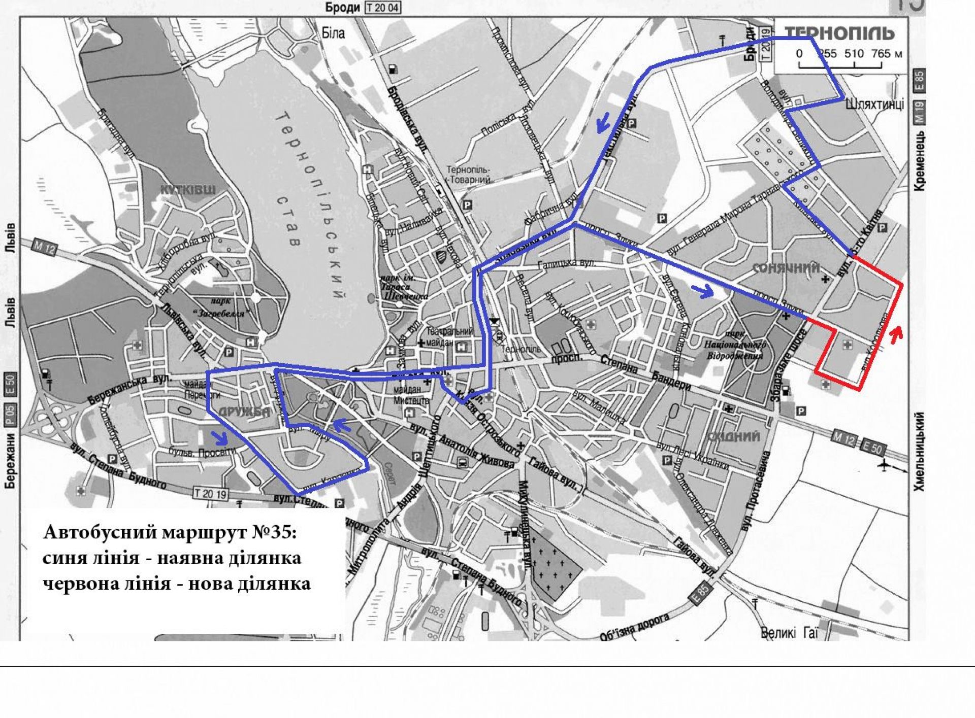 «Наразі комунальні автобуси обслуговують маршрутну мережу №1а, що сполучає масиви «Східний» та «Дружба», окрім цього, нещодавно експерементально було запроваджено автобусний маршрут №35 «вул. Винниченка - ТРЦ «Подоляни», який уже користується популярністю в тернополян, адже сполучає основні пасажиронасичені райони Тернополя, - зазначив Олег Вітрук. - Проте, на прохання тернополян, наразі пропонується його доповнити, а саме: від просп. Злуки автобус курсуватиме через вулиці Сахарова, Р. Купчинського, Корольова та В. Стуса, що забезпечить транспортне сполучення лікарні №2 з вул. Київською, В. Великого, Леся Курбаса, Симоненка та «Подолянами»».