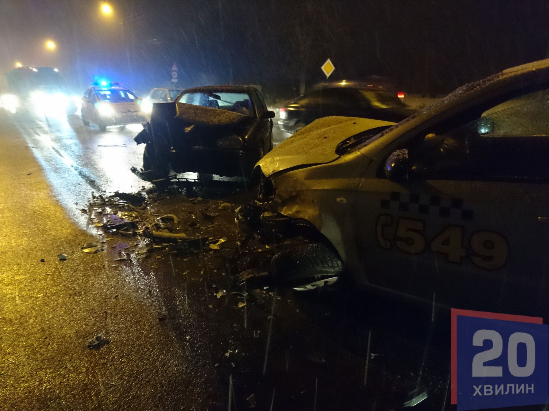 - Там зіткнулися авто Chevrolet (таксі), Volkswagen та автобус. Водія таксі забирала "швидка".