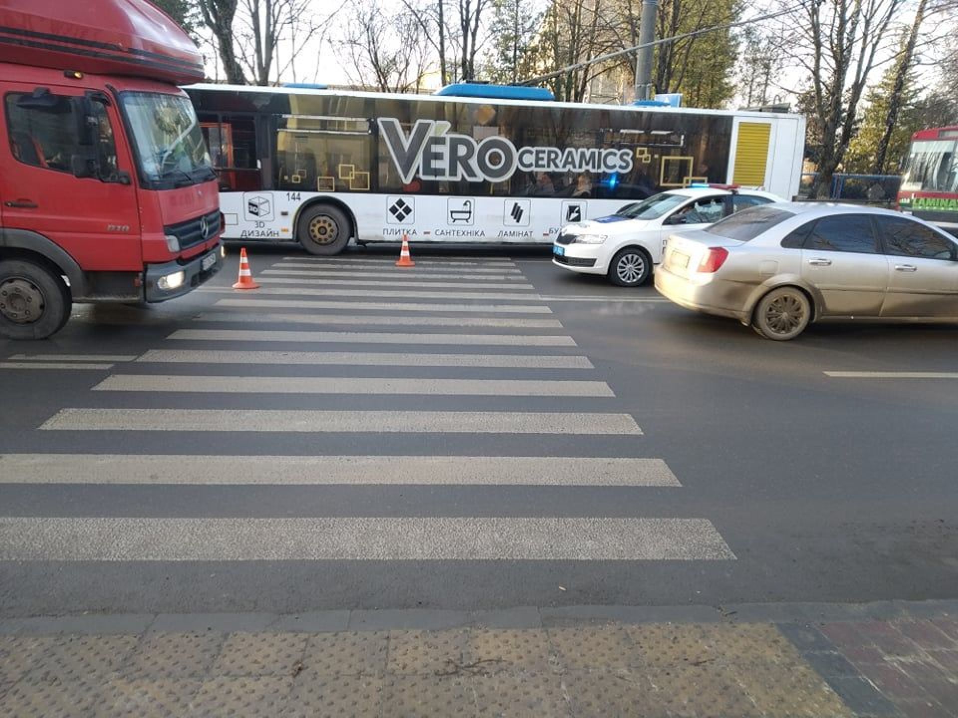 На місці подій близько 09.10 журналістка "20 хвилин" побачила лише поліцейських, які оформлювали ДТП та автівку, яка, за словами очевидців здійснила наїзд на людину.