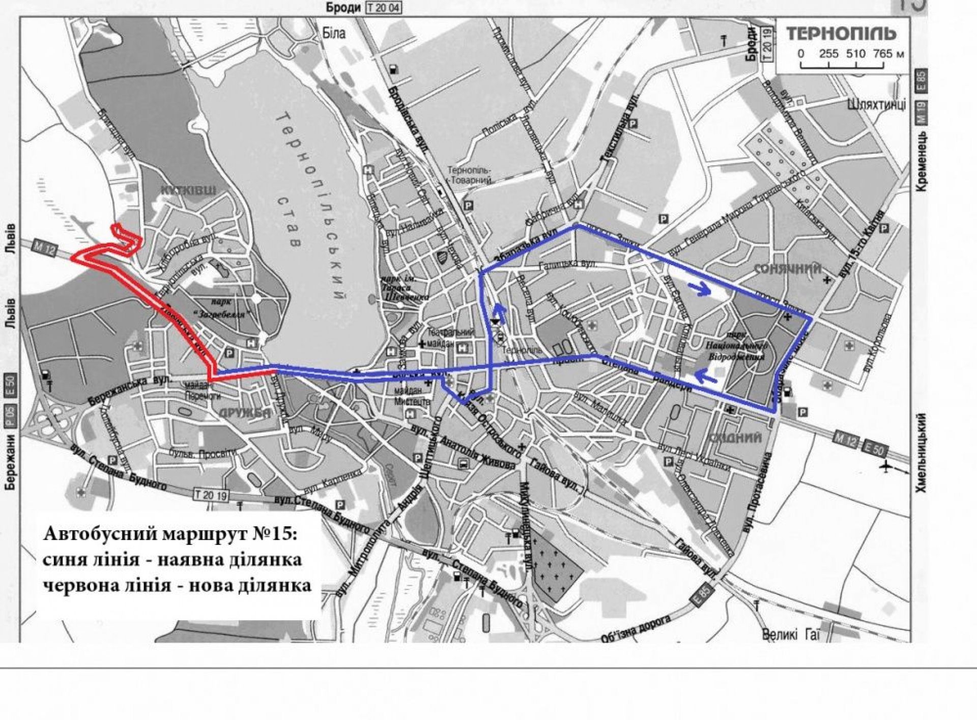 Маршрут №15 «Вул. Золотогірська – просп. Злуки – просп. Степана Бандери». Для покращення транспортного сполучення мешканців вул. Золотогірської і Бенцаля з залізничним вокзалом та просп. Злуки, а також уникнення дублювання маршрутів у районі вул. Кривоноса та Миру, пропонується приєднати маршрут №25 до маршруту №15.