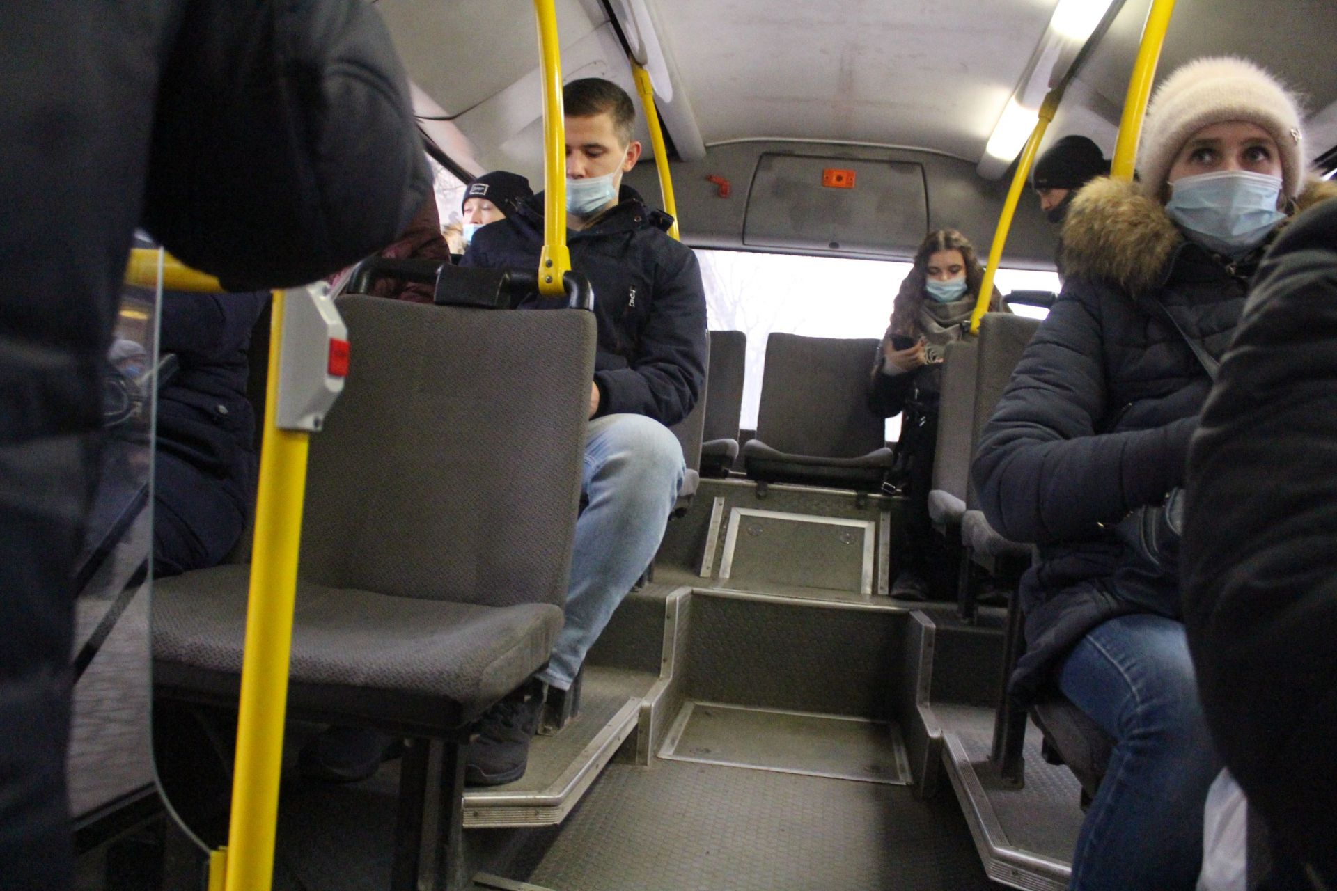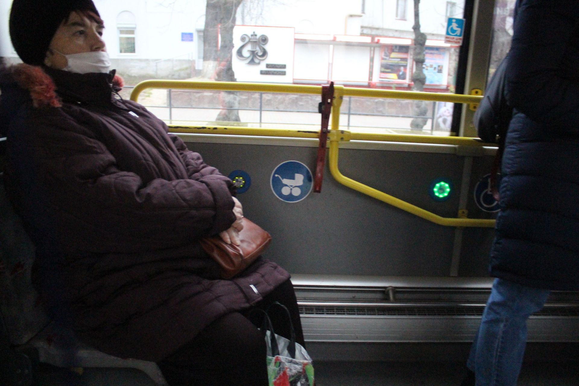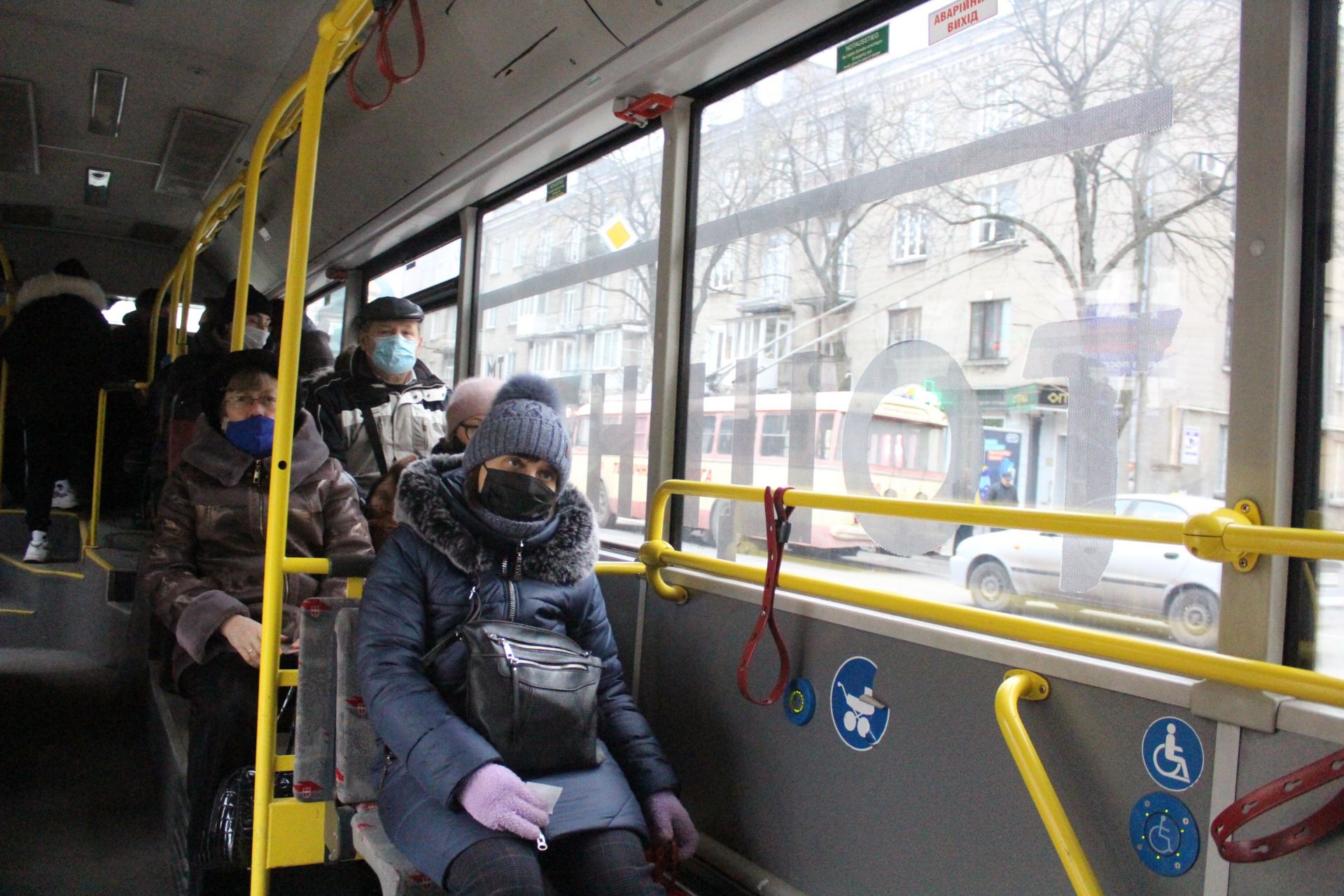 У транспорті порушень маскового режиму журналісти не помітили. Усі пасажири заходять в масках, щоправда, не всі їх носять правильно.