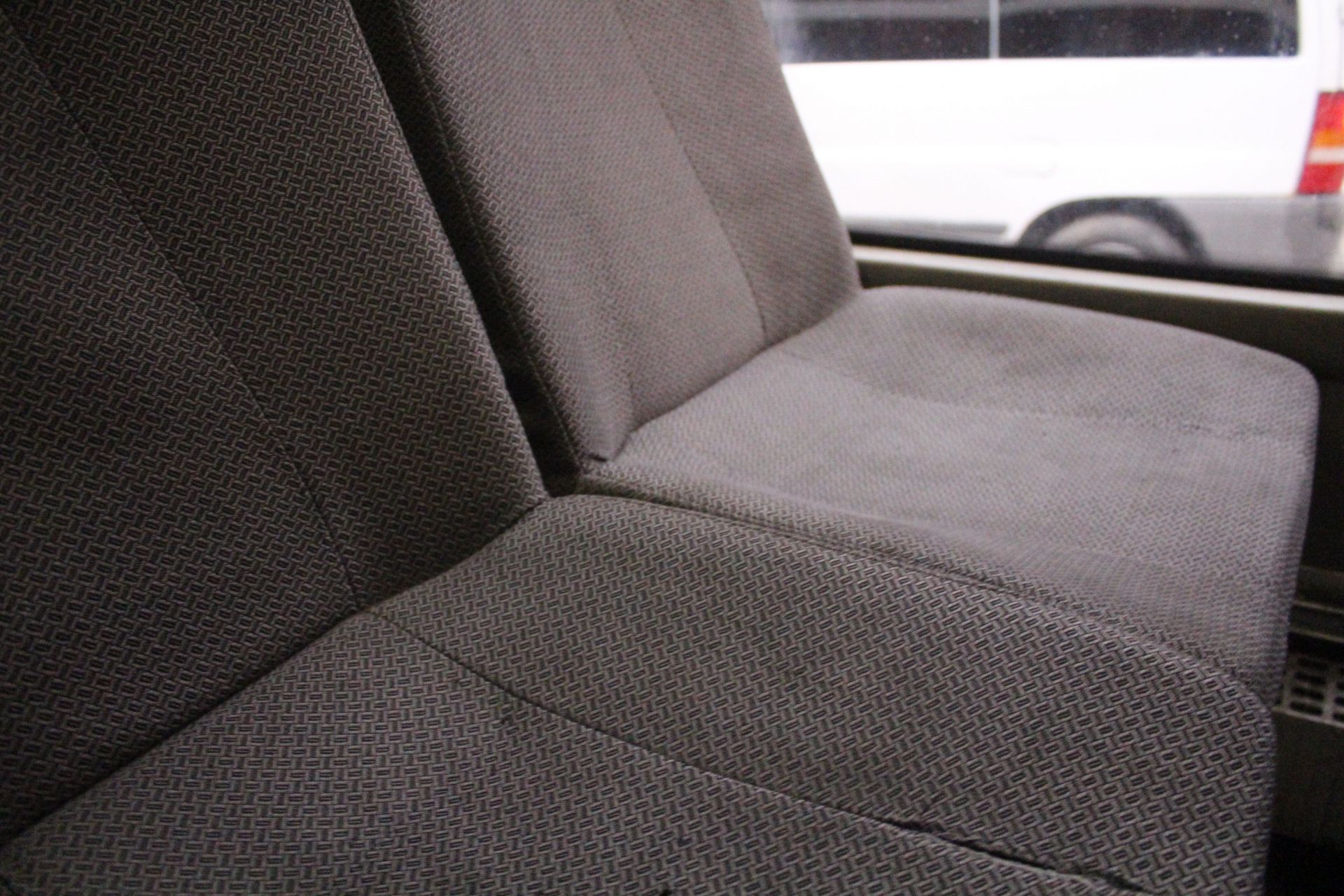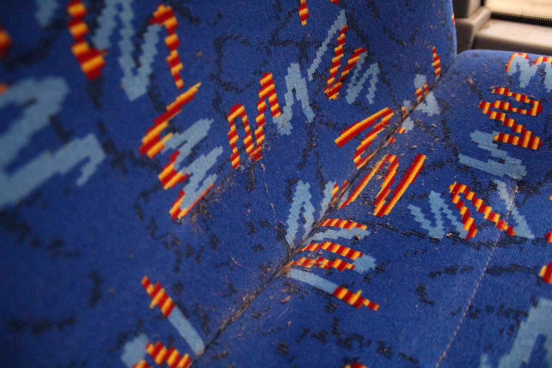На сидіннях є тонка обшивка. Не брудна. Вона не надто м’яка, однак вона не збирає стільки пилу, як в маршрутках чи тролейбусах.