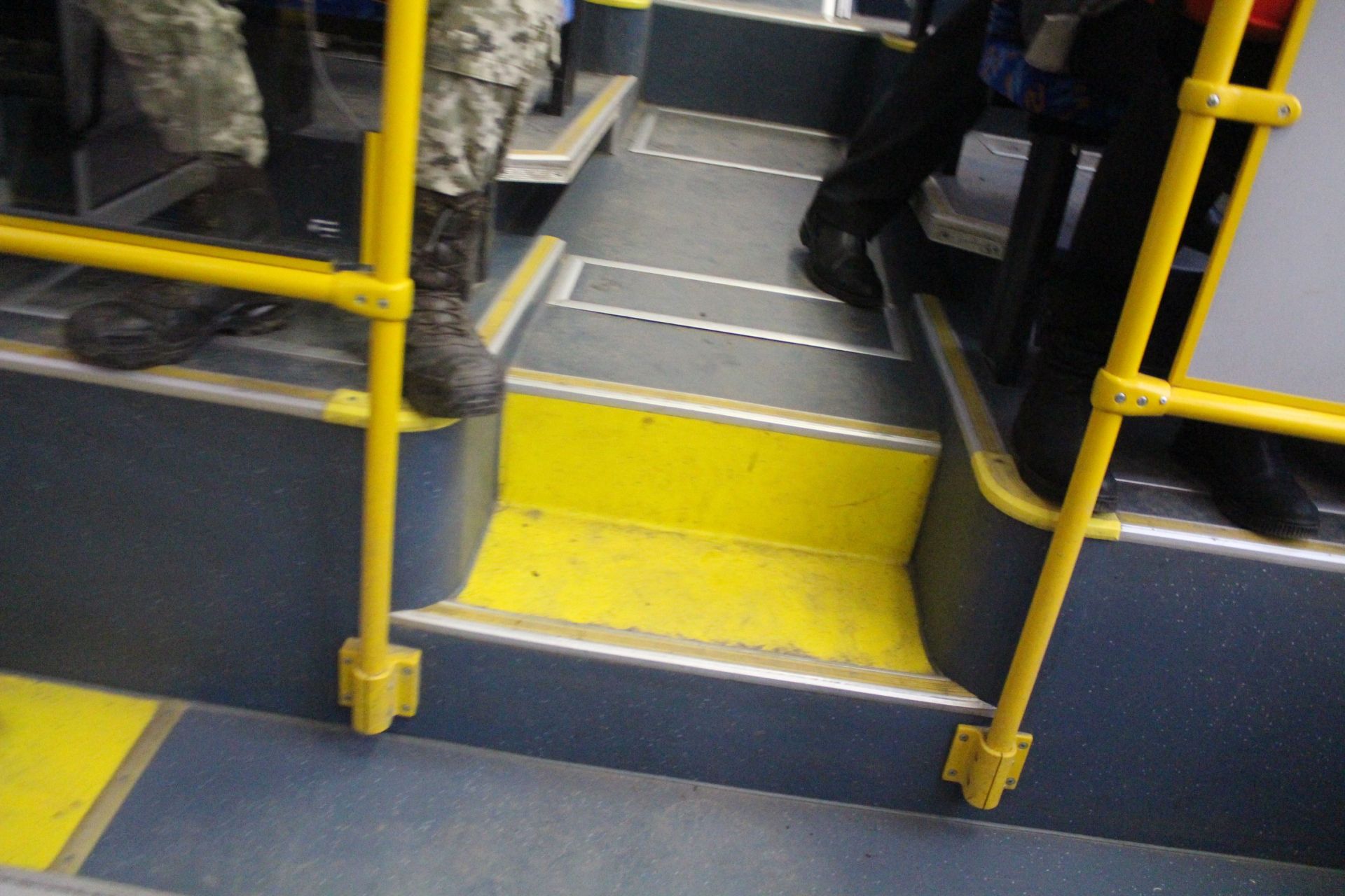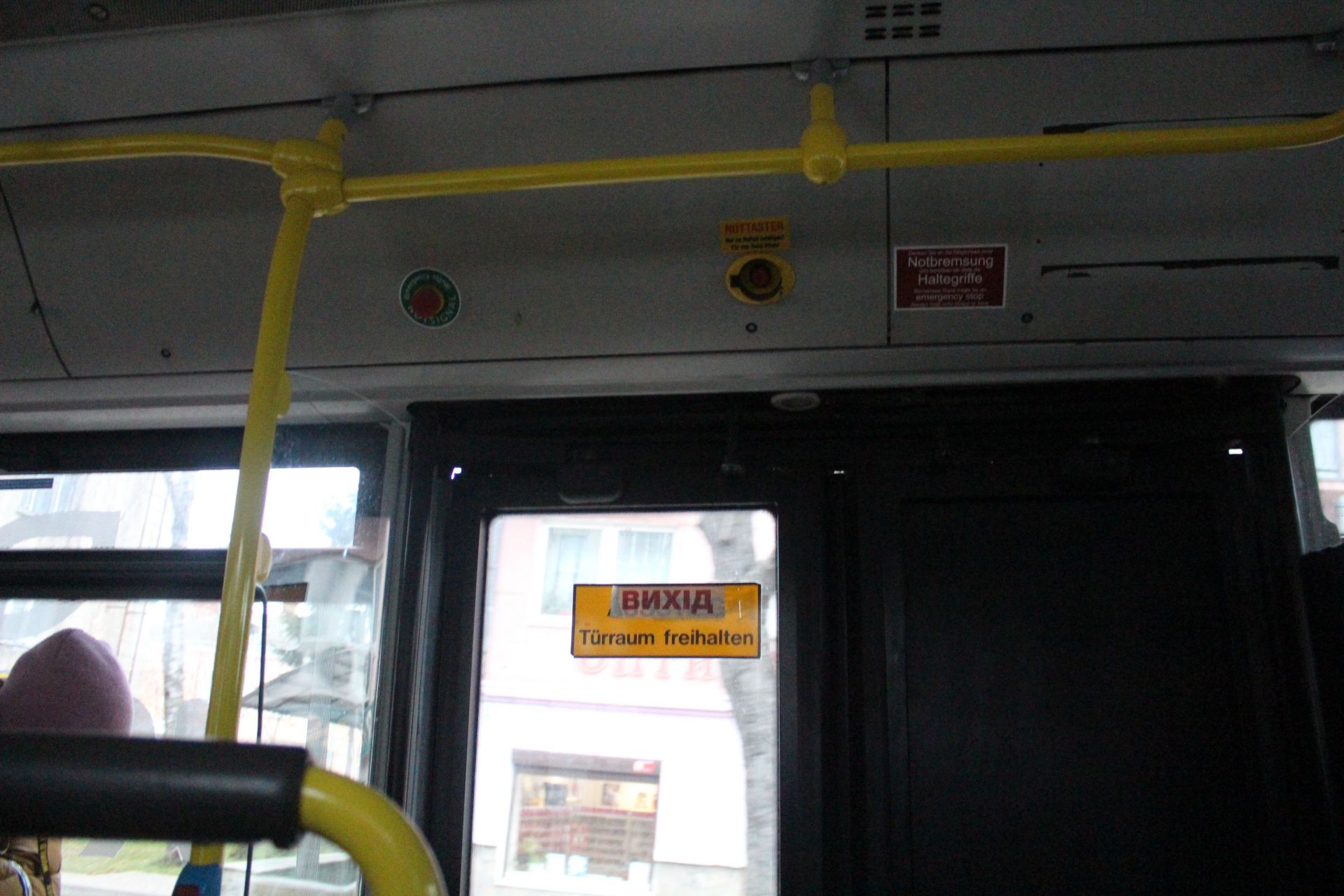 Є гумові тримачі пасажирів, які стоять. Поручні не іржаві та не потерті. Однак місця для візочка немає, на відміну від автобусів MAN.