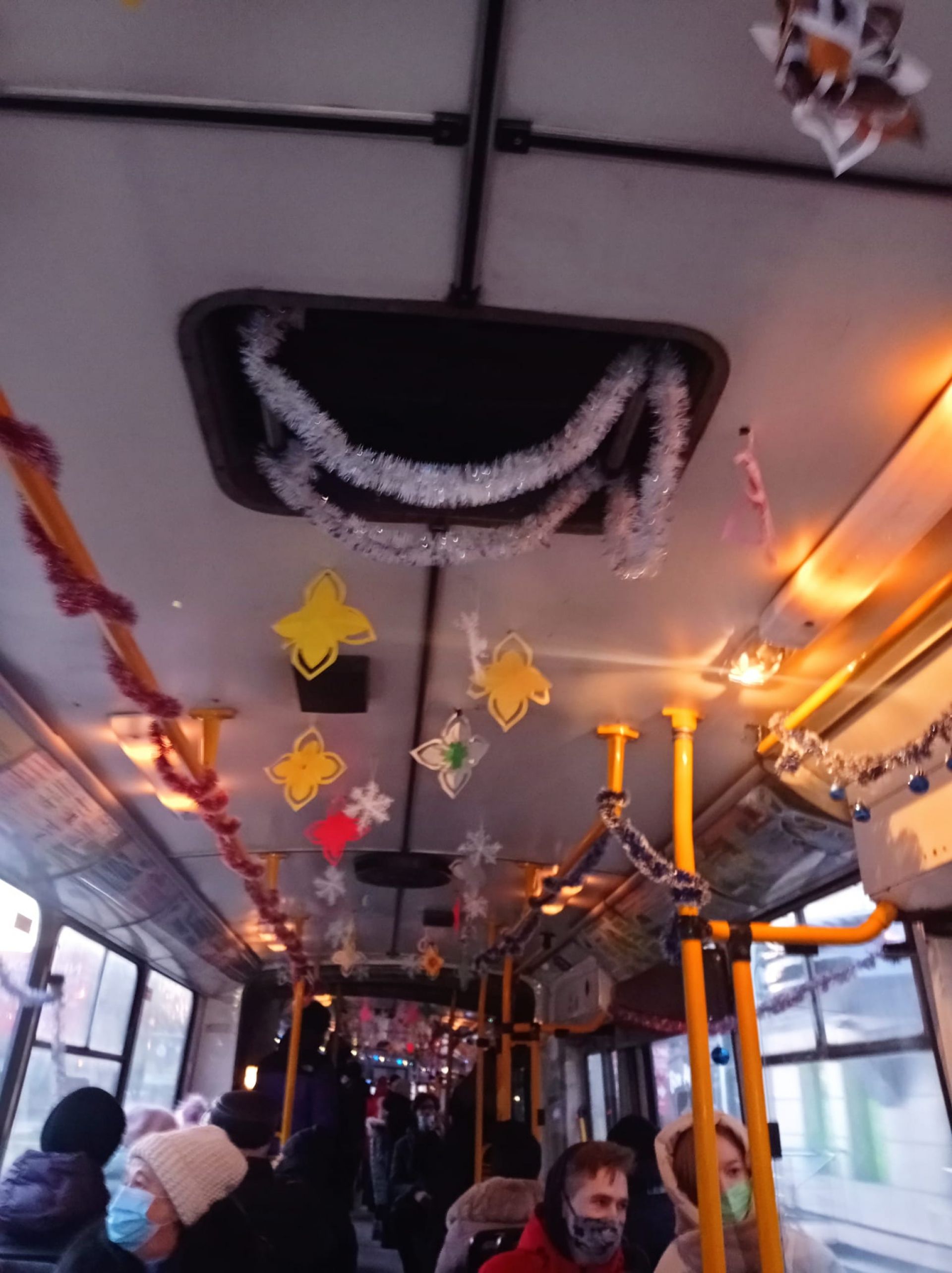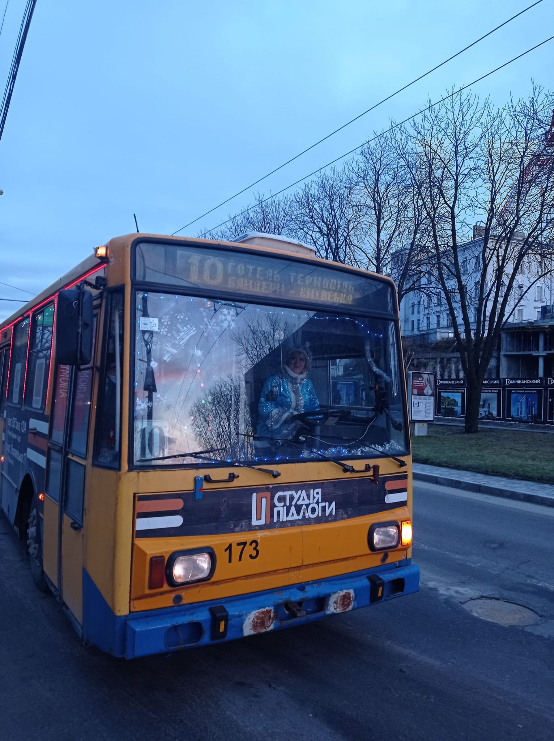 І додала чотири фото з новорічного тернопільського тролейбуса.