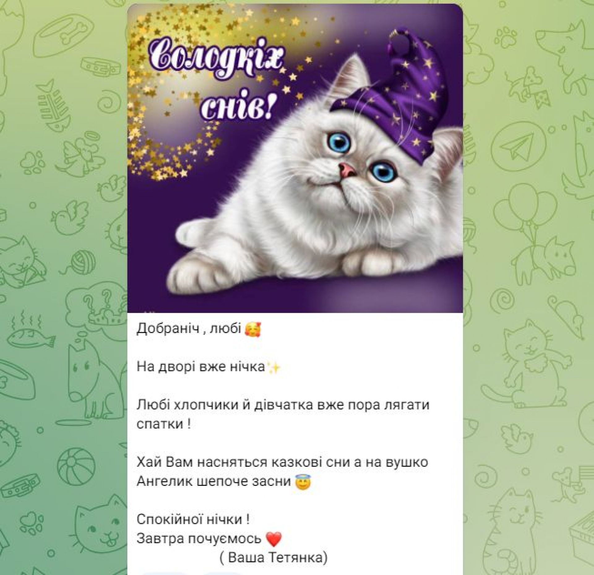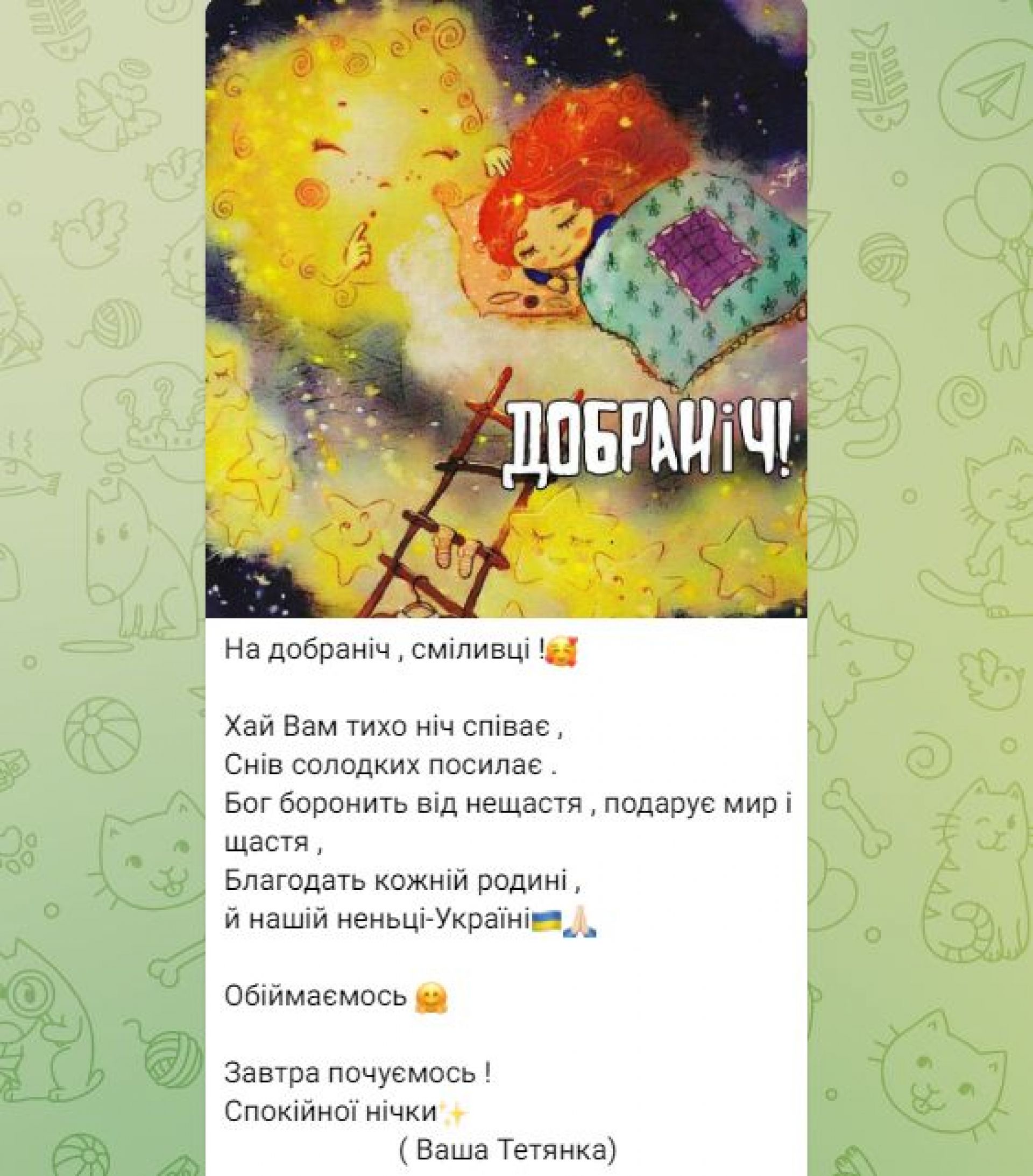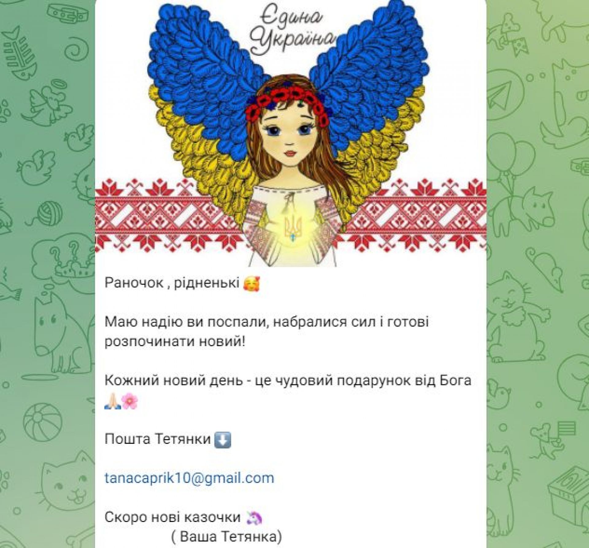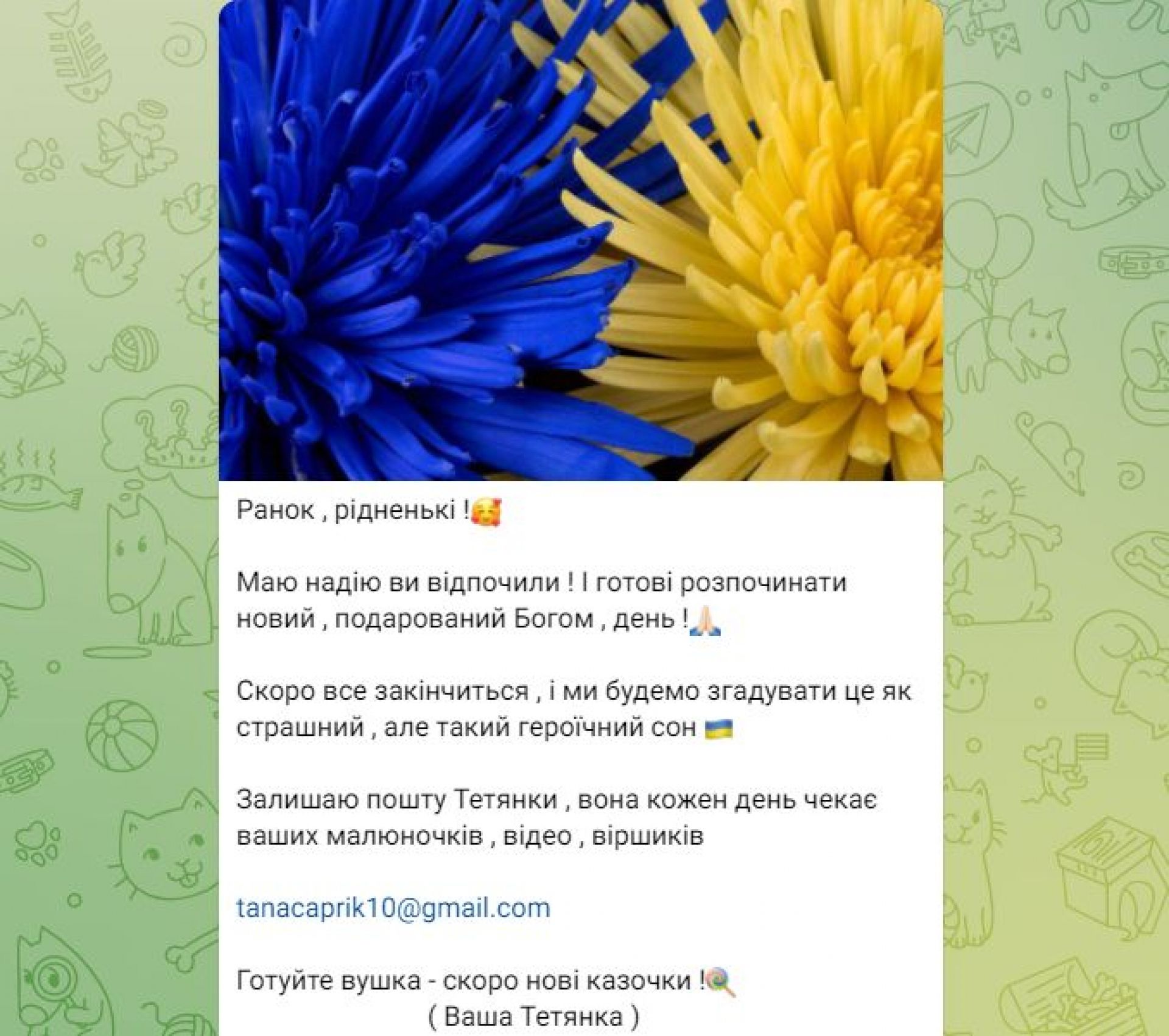 Також Таня намагається постійно звертатись безпосередньо до діток у своєму телеграм-каналі, підтримувати їх і надихати.