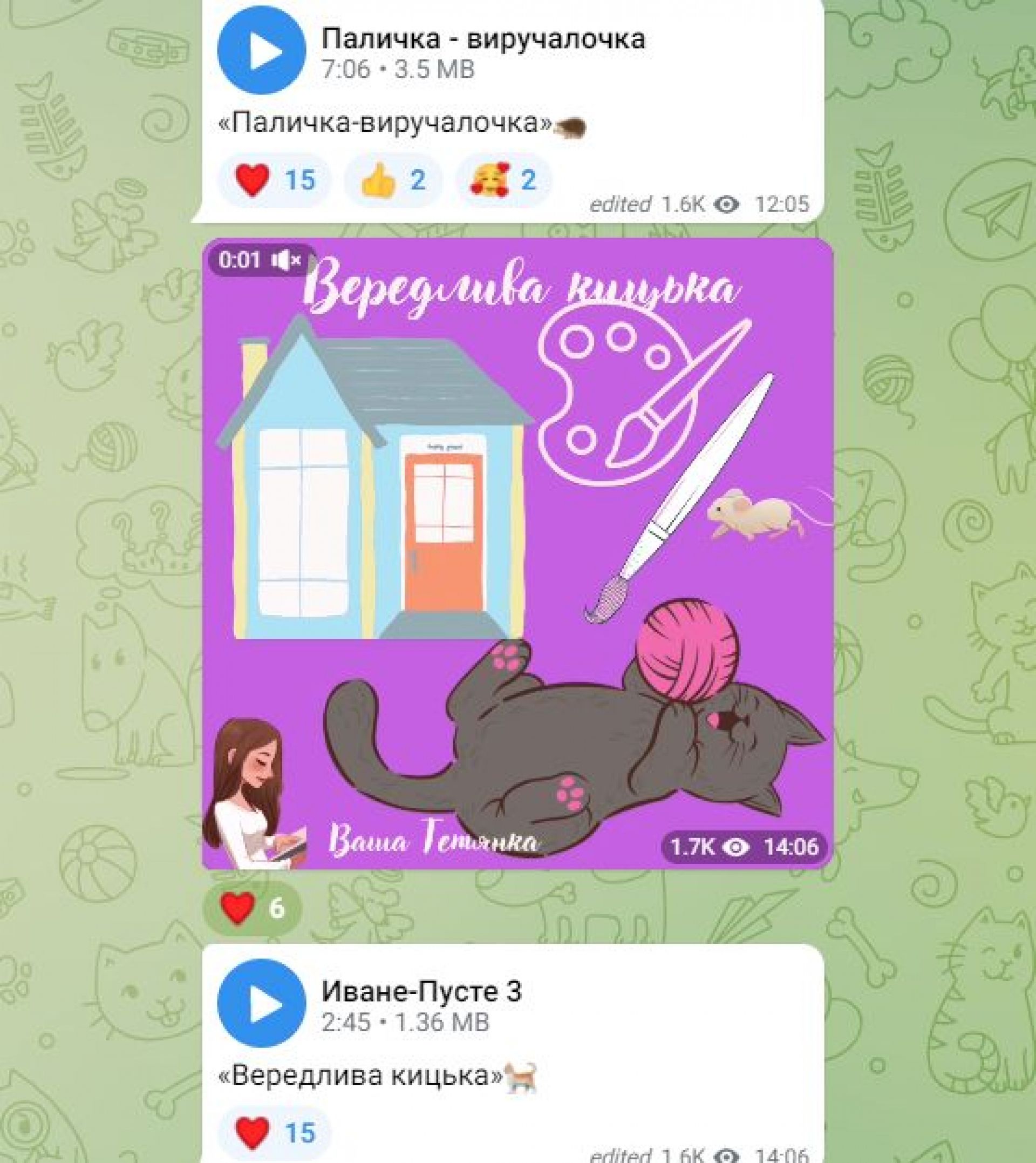– Дітки – підписники мого каналу, чи не з усіх областей нашої держави і різного віку. Я отримала чимало повідомлень від їхніх матусь зі словами вдячності за казочки. Вони казали, що тим самим і їх, дорослих, заспокоюю. Я одержала відгуки навіть від матусь, яким скоро народжувати. Вони теж в певній мірі переживають стрес і слухають мої аудіоісторії, аби заспокоїтись. Їм так легше! – ділиться вісімнадцятирічна Таня Чаприк.