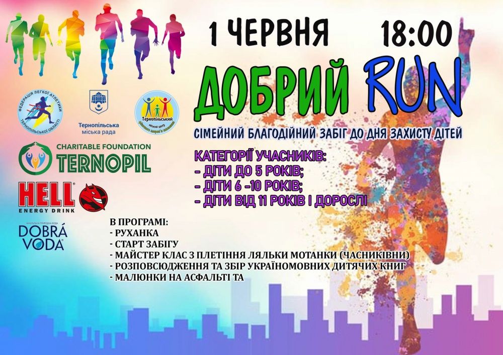 Сімейний благодійний легкоатлетичний забіг «Добрий RUN» відбудеться 1 червня.