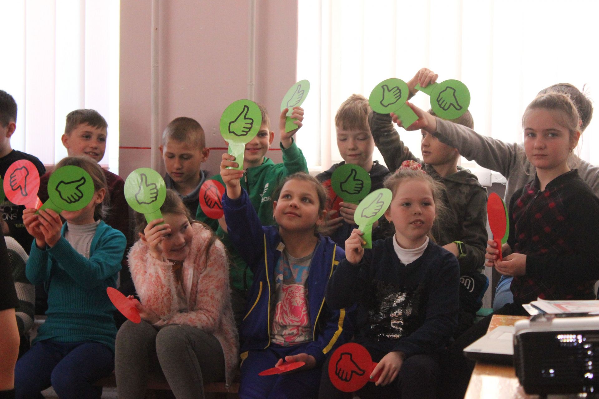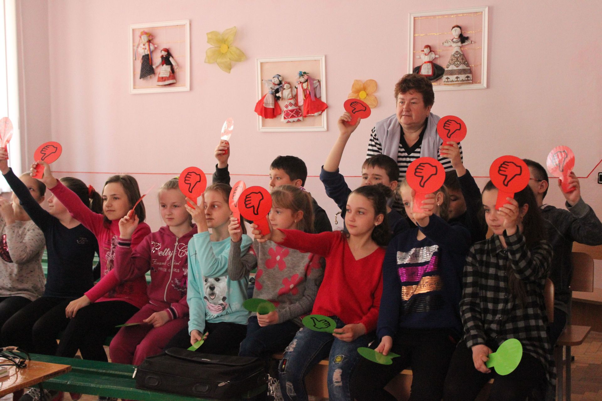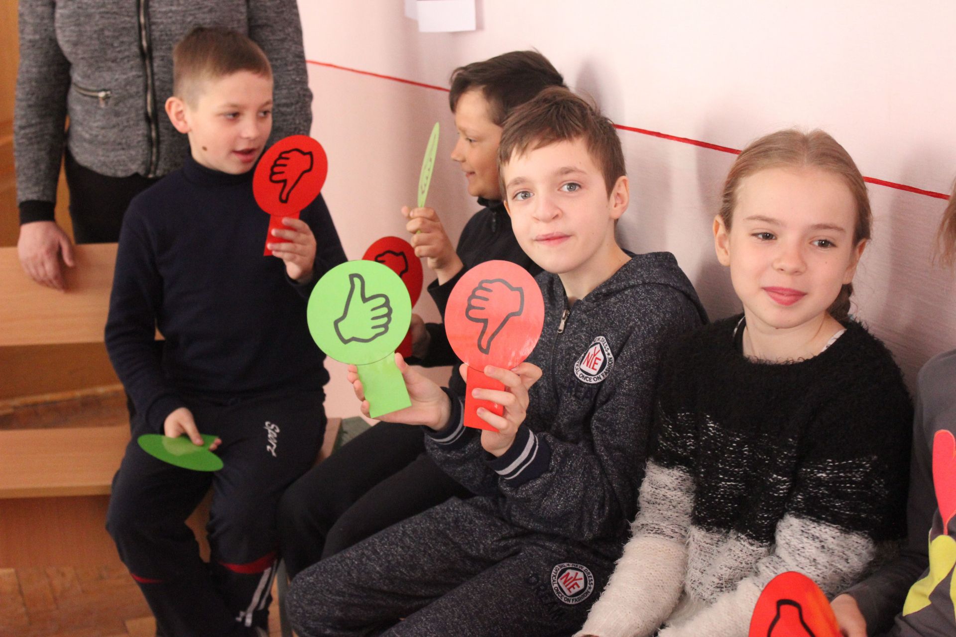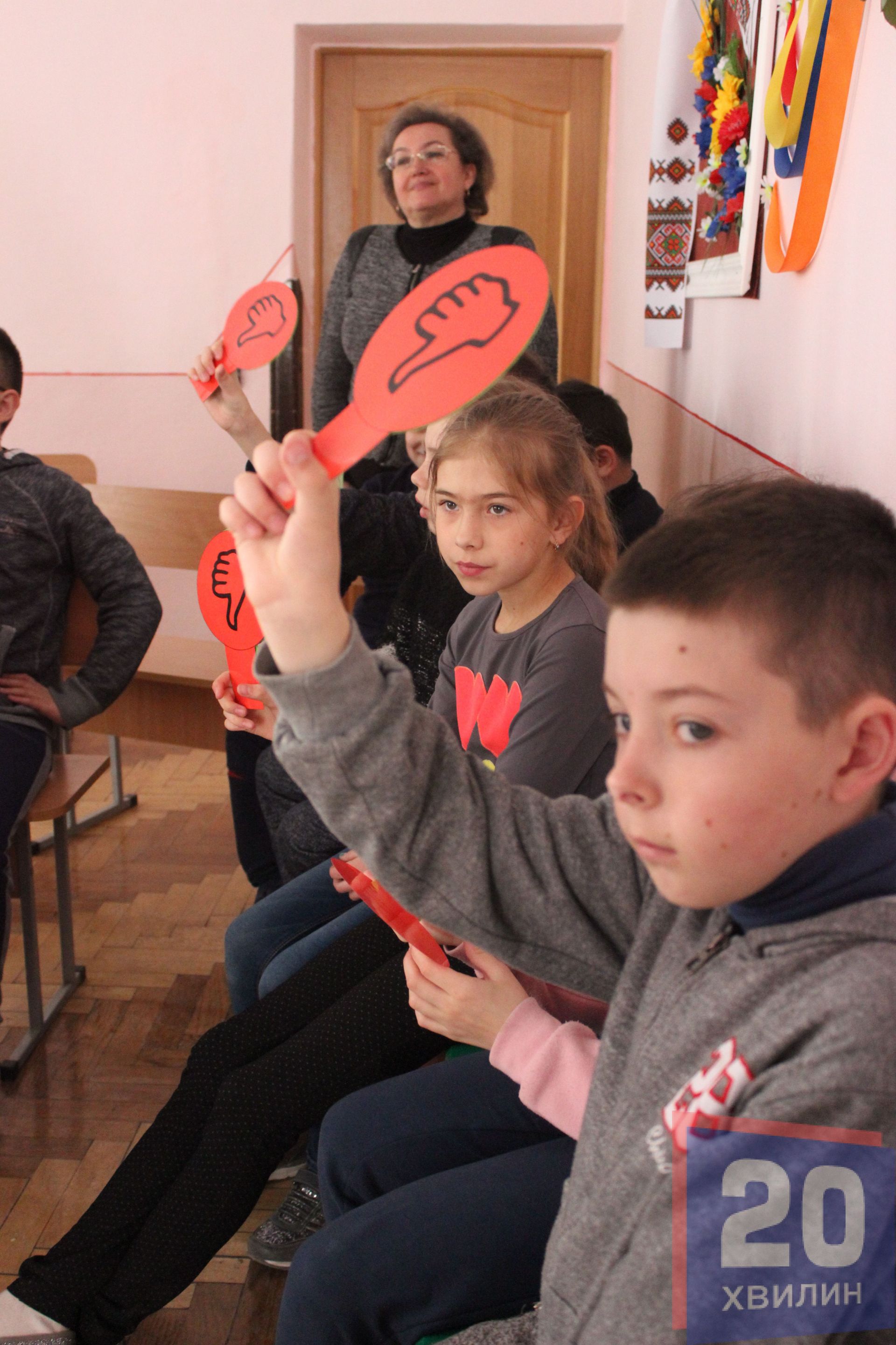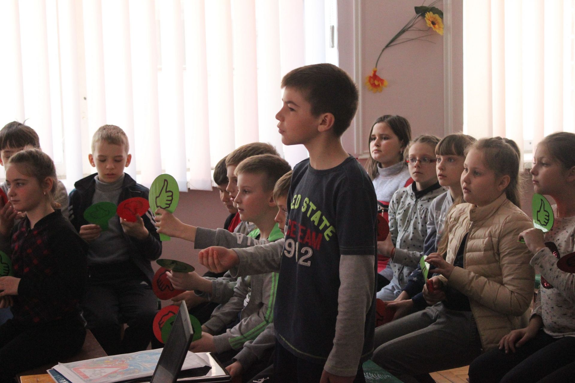 Учням молодших класів школи №26 таке заняття сподобалось. Вони з радістю приймали участь у іграх, дивились мультфільми, розгадували вікторини та відповідали на запитання.