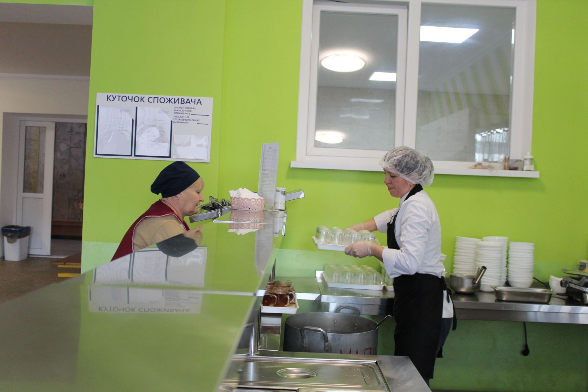 На кухні задіяні двоє кухарів й посудомийка. З обладнання мають дві плити і духовку, новий холодильник. Все на електриці. Школа від осені забезпечена генератором, та йому бракує потужності, і він «не стягує» кухонні пристрої. Та тут знайшли вихід із ситуації. Від генератора працює лише лінія роздачі.