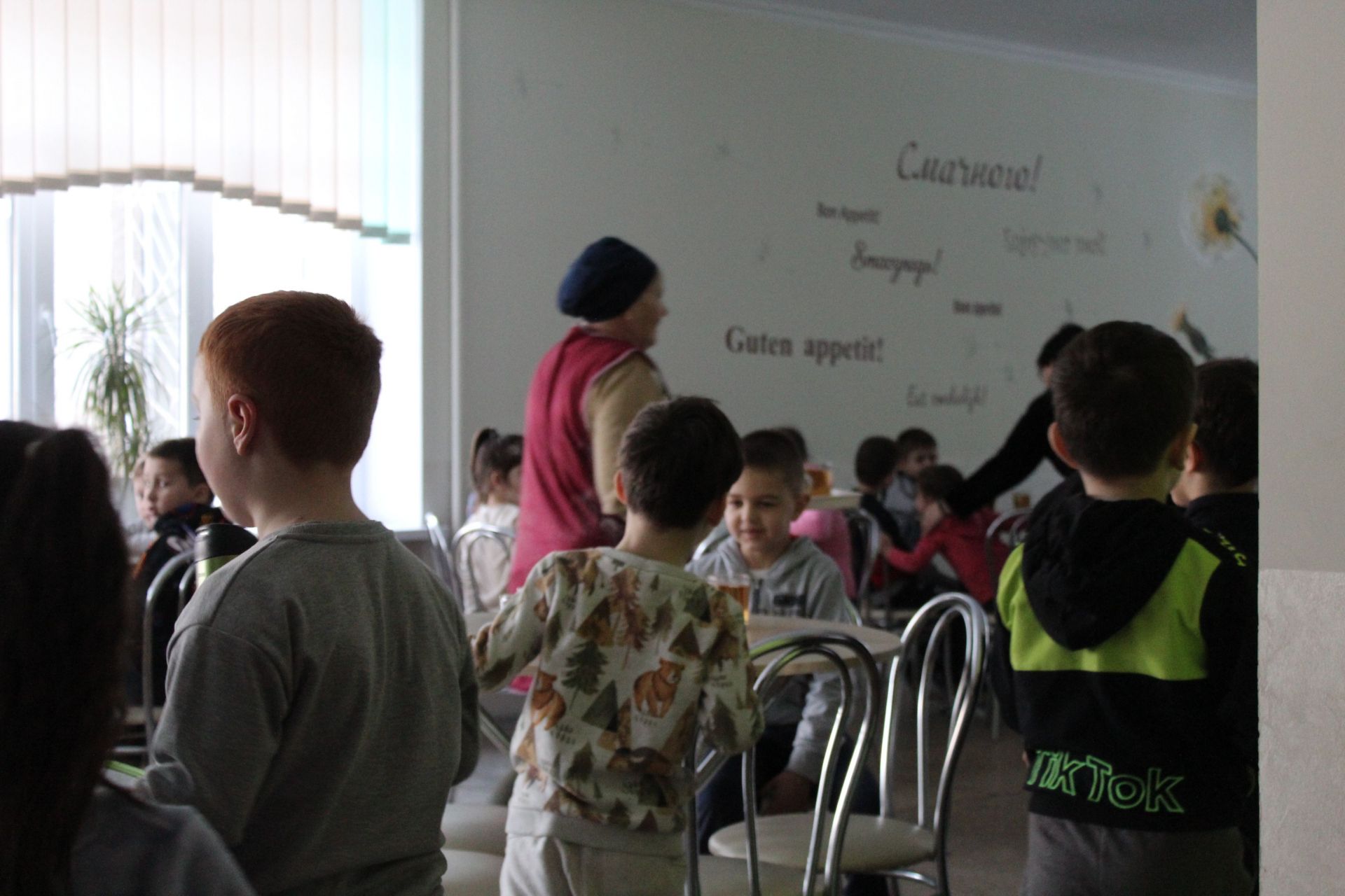 – Що саме готуємо? Нині, на сніданок, приміром, у нас було різотто з овочами, булочка з маслом та чай з лимоном. На обід – перловий суп, картопляне пюре і курячі оладки. Нині маємо світло зранку, то ще зробили тушковану капусту. Щодня даємо дітям сезонні фрукти: мандарини, банани, апельсини, бо у них багато вітамінів. На вечерю – молочні страви. А коли вмикають світло з полудня, ми на вечір і щось спекти встигаємо: ватрушки з сиром, пиріжки з повидлом тощо, – говорить шеф-кухарка Марія.