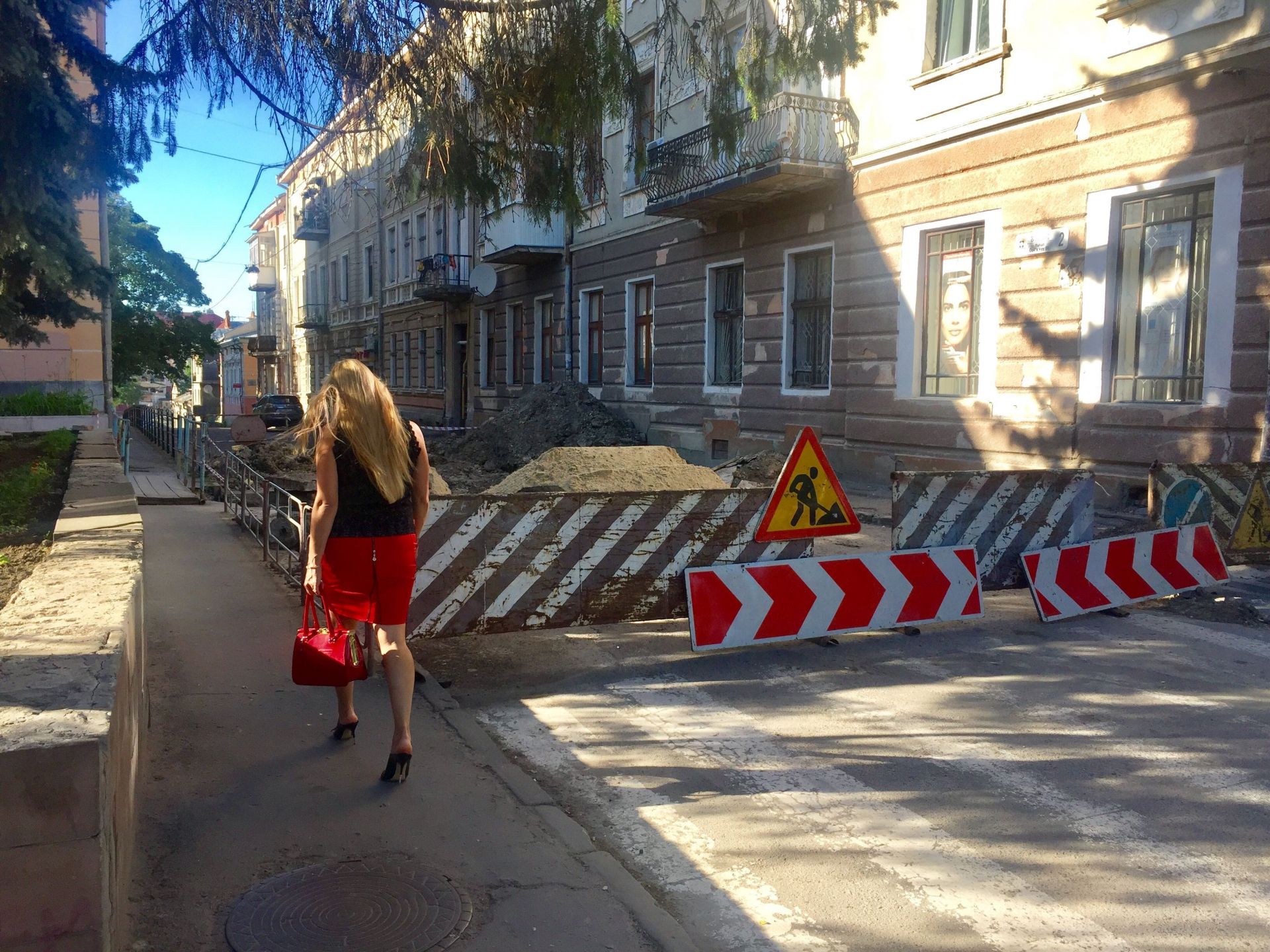 Проїзд транспорту перекритий. Тут вже демонтували бордюри та розібрали старе асфальтобетонне покриття.